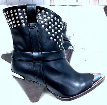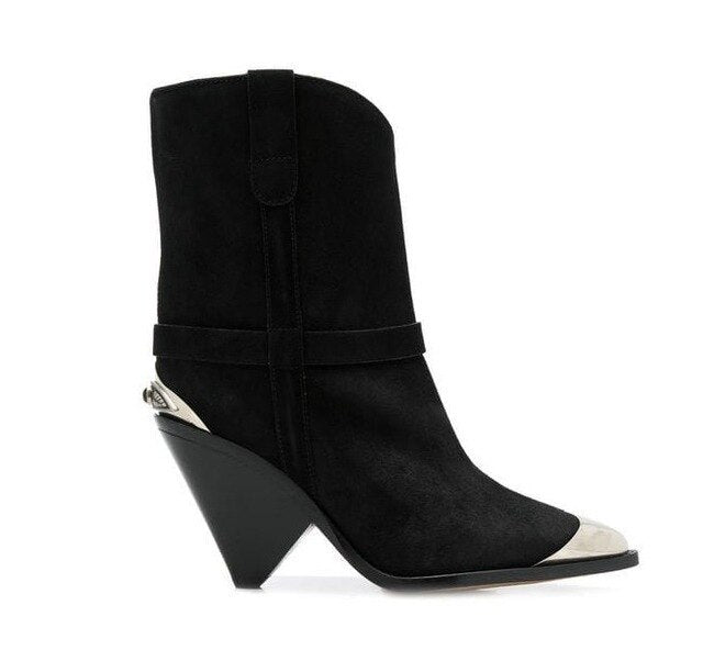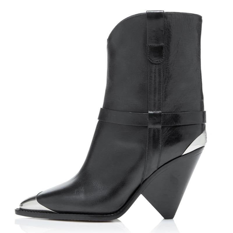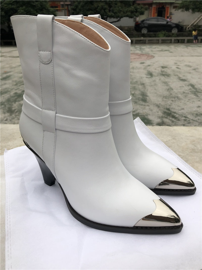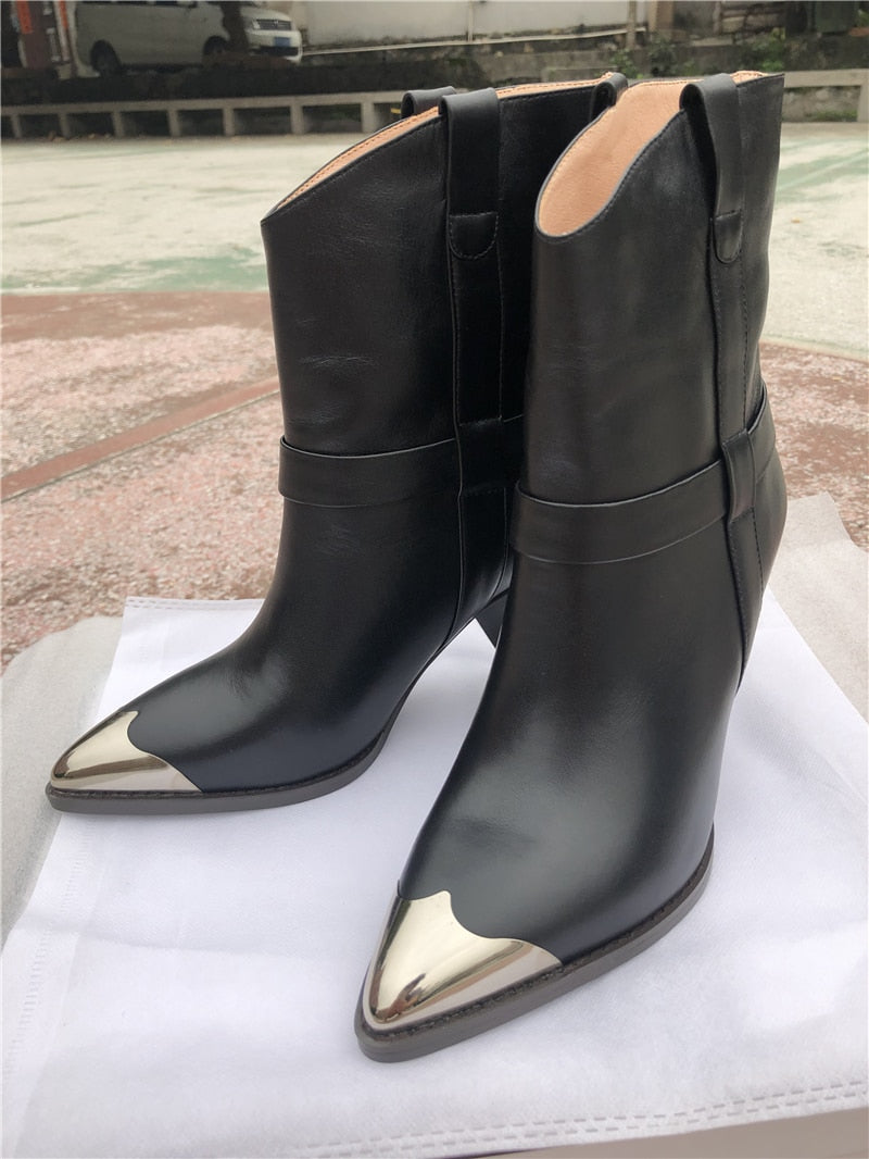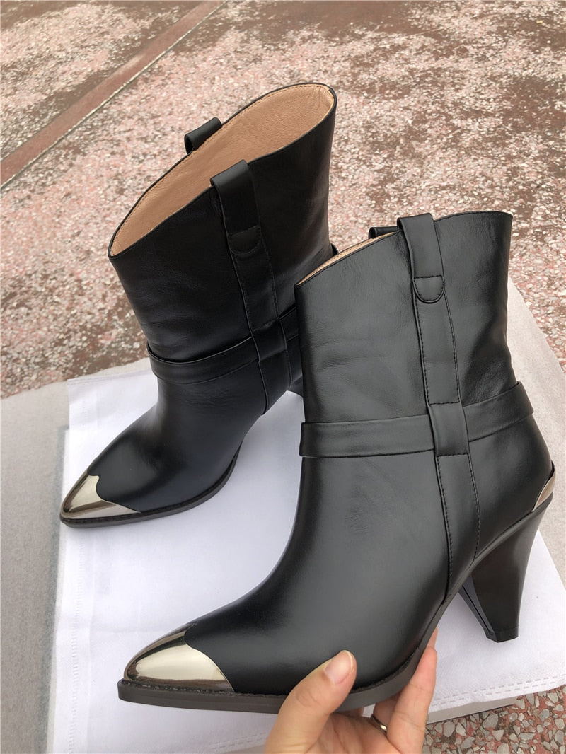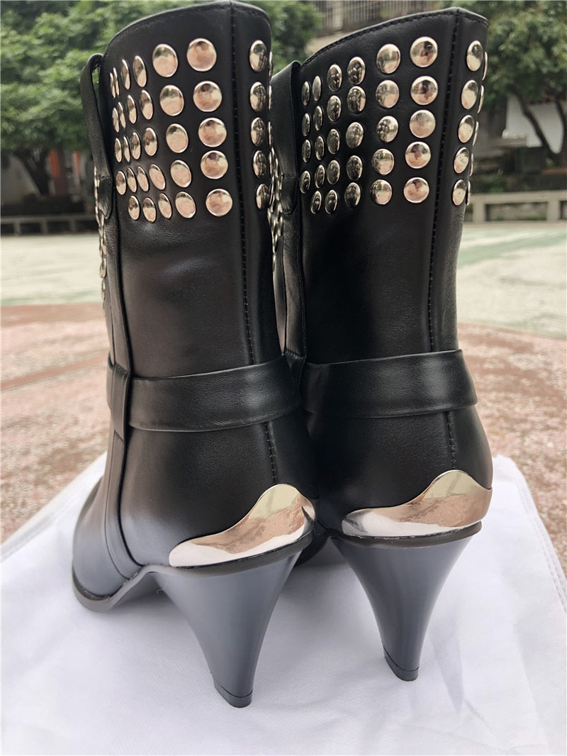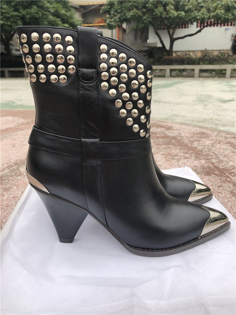 BuonoScarpe Real Leather Ankle Boots Women Metal Pointed Toe Rivet Tassel Strange High Heel Boots Woman Fashion Martin Boots2019