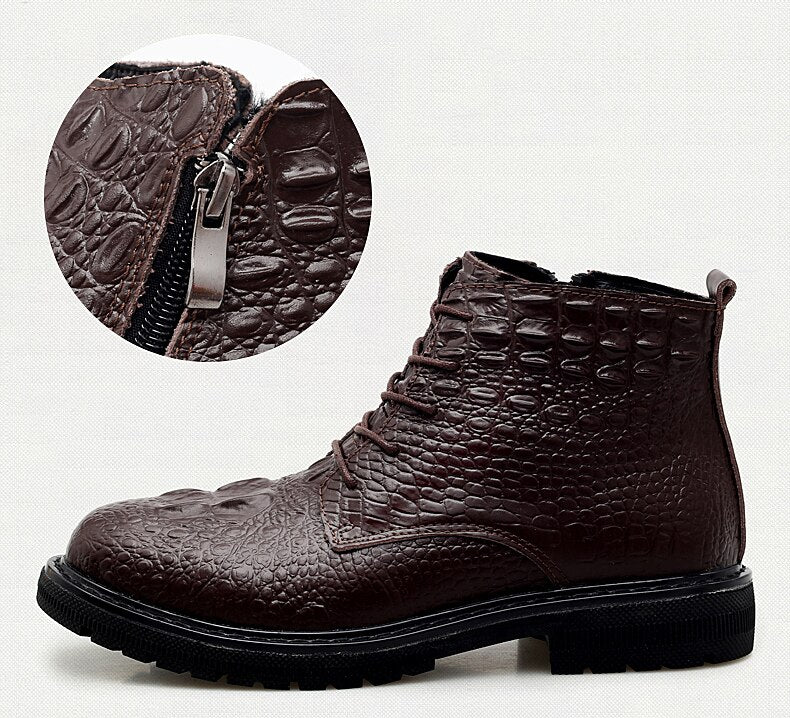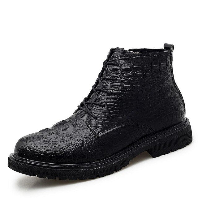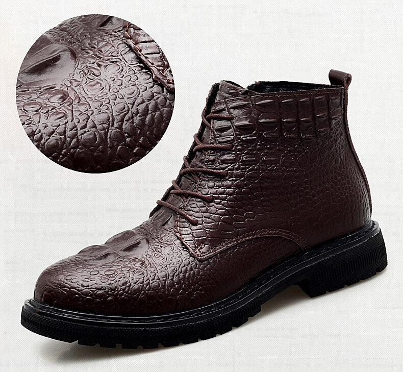 Business Men Boots Elite Men's Shoes Crocodile Texture Fur
