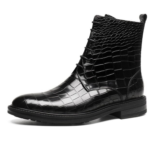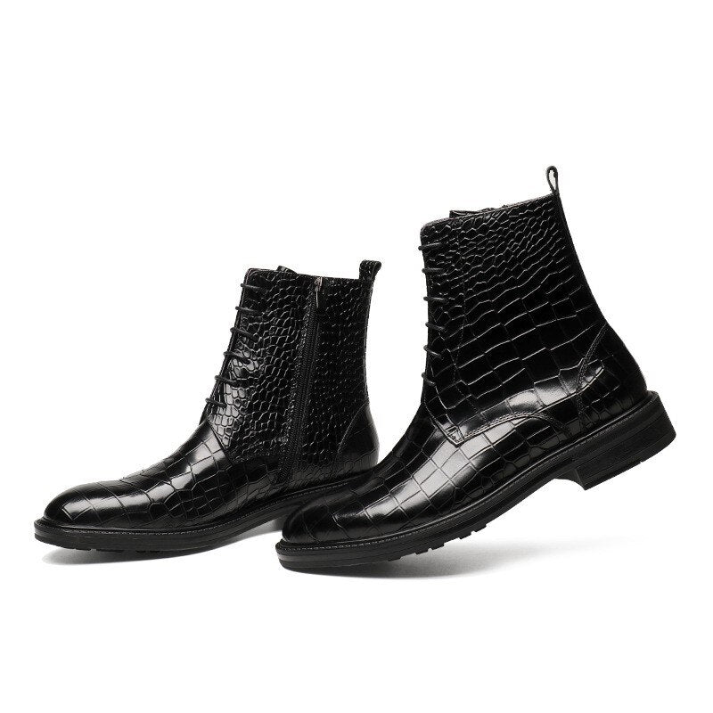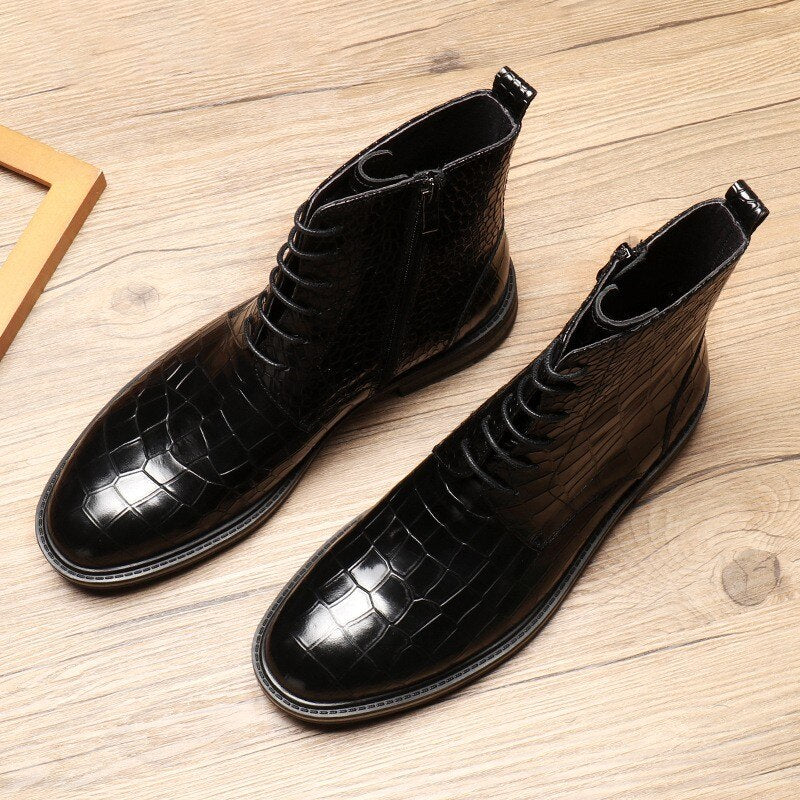 Men Stone Pattern Embossing Safety Shoes Motorcycle Boots