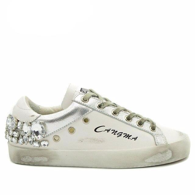 Women Sneakers Luxury Brand Fashion Silver Diamond Shoes Genuine Leather Handmade White Crystal Shoes Woman Footwear Adul