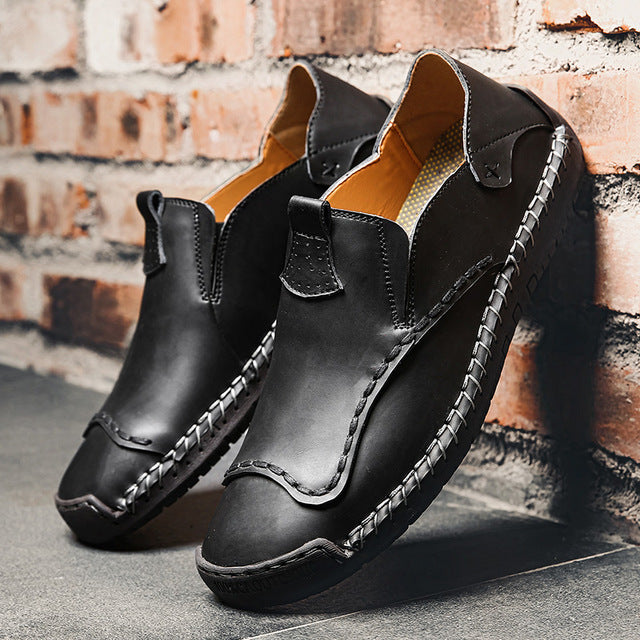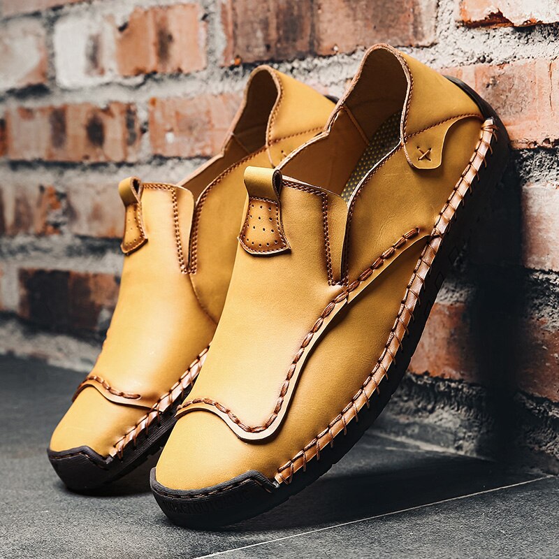 Handmade Big Size Leather Casual Shoes Cowhide Slip-On Vintage Loafers Men Hot Sale Moccasins Flats Boat Shoes 38-48