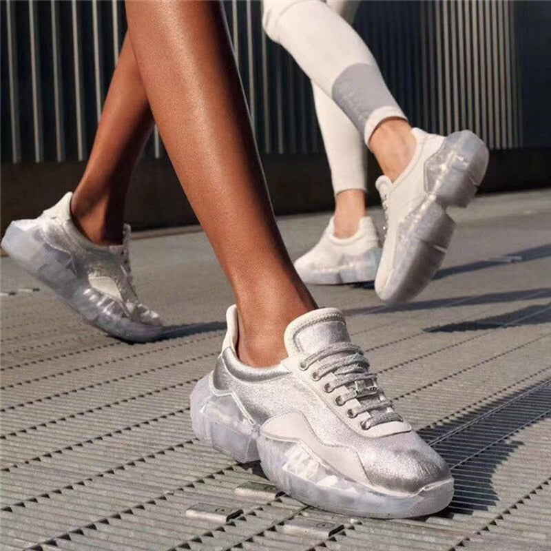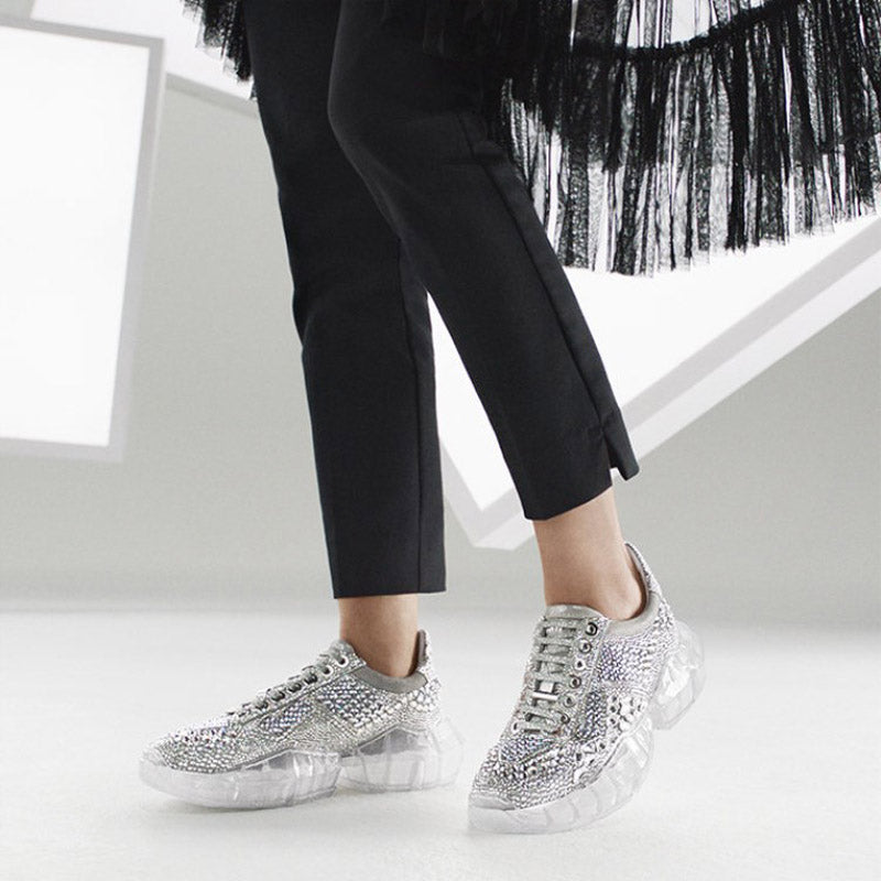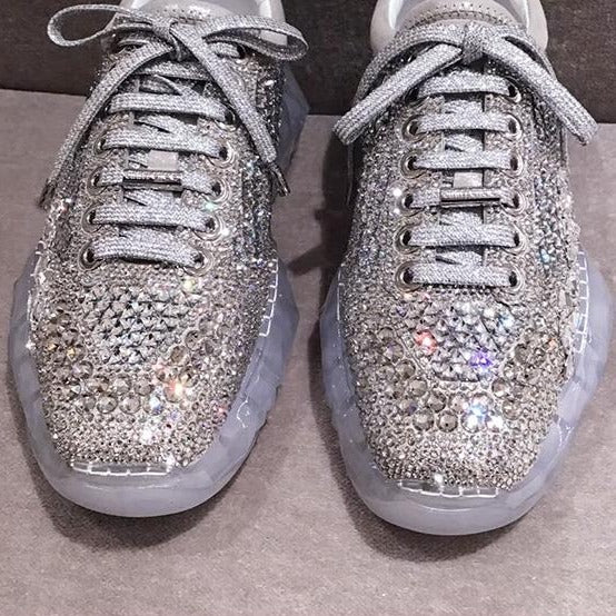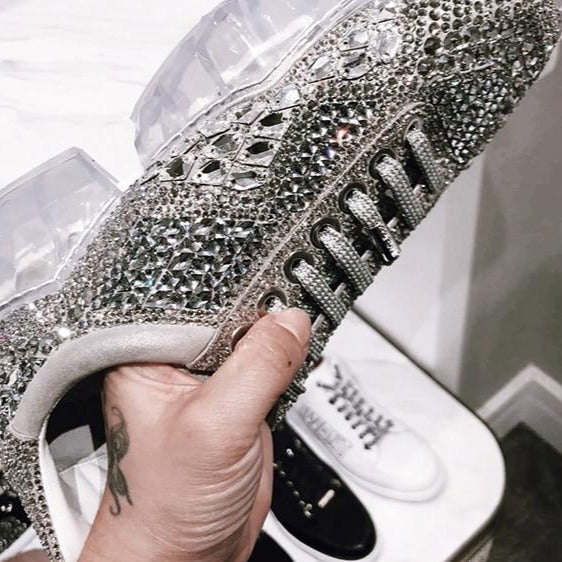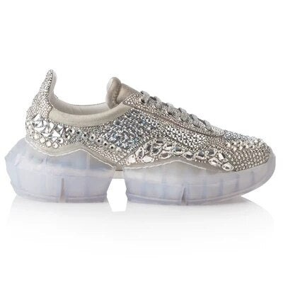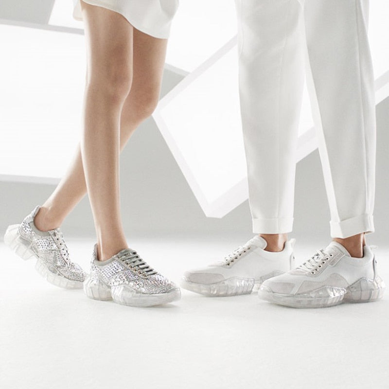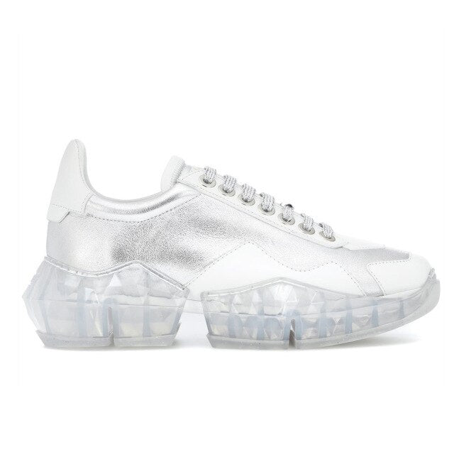 Casual Bling women's shoes zapato de mujer crystal white shoes platform rhinestone leather comfortable women's shoes.