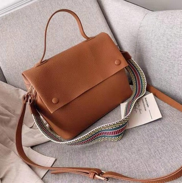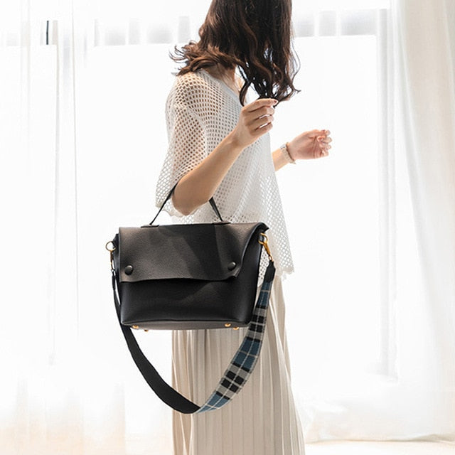 Casual Large Capacity Buckets Bag Designer Cover Shoulder Bag Luxury Matte Pu Handbags Wide Striped Strap Crossbody Bag Purses