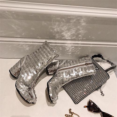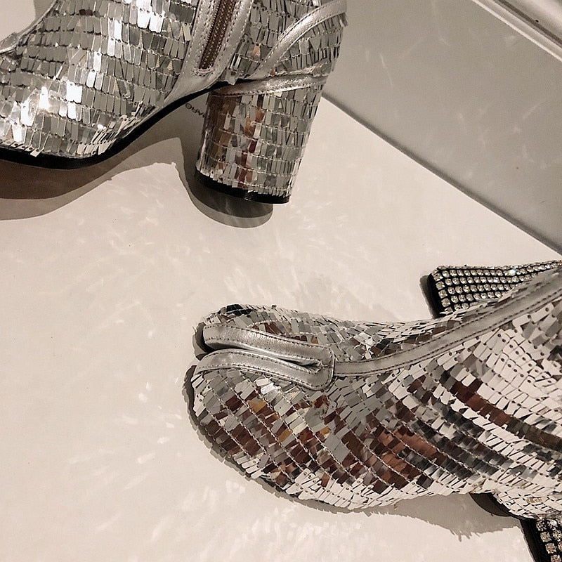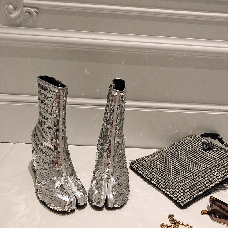 Chic Tabi Boots Women Luxury High Heels Botas Mujer Winter Sequin Ankle Boots Bling Botas Feminina Top Quality