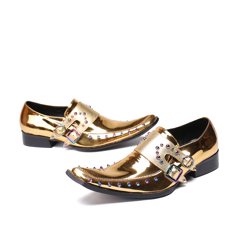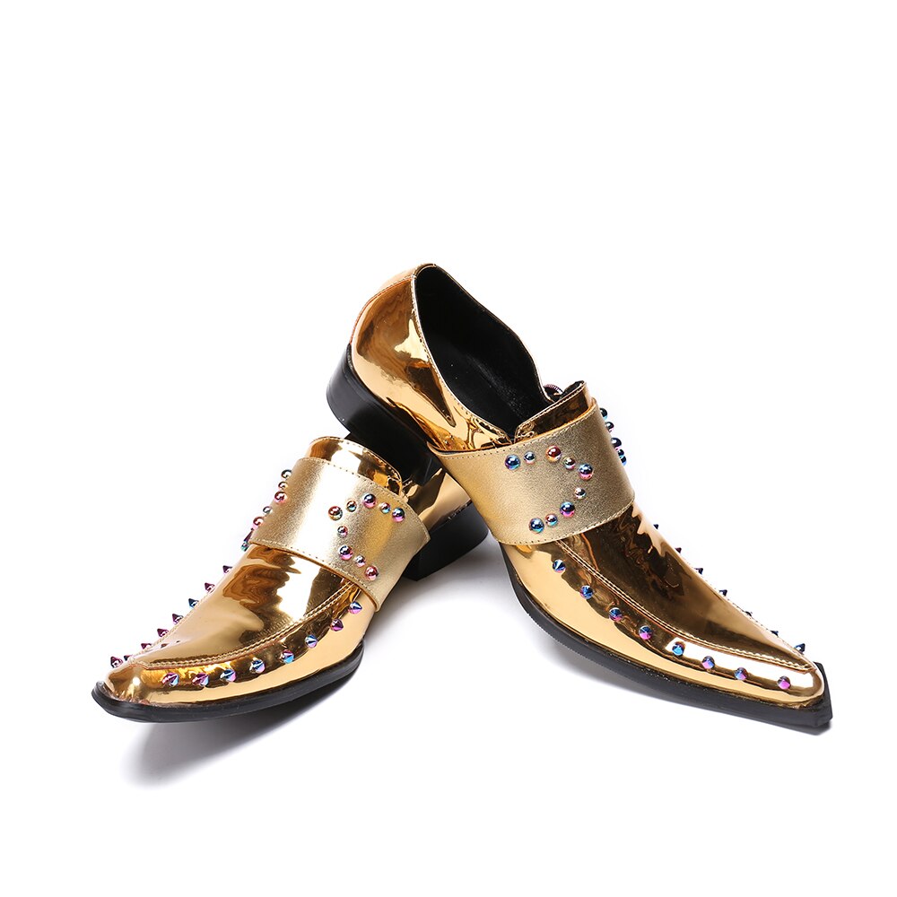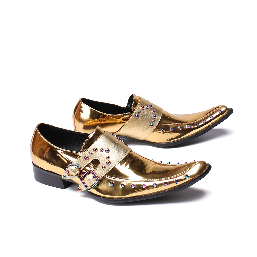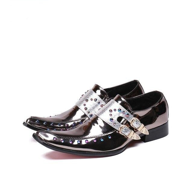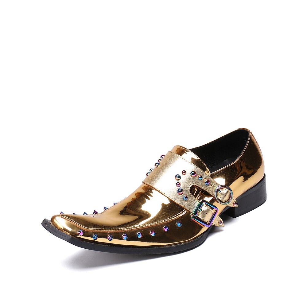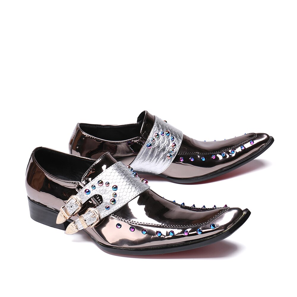 New British Style Gold Silver Wedding Party Men Dress Shoes Rivets Genuine Leather Men Oxford Shoes Formal Shoes