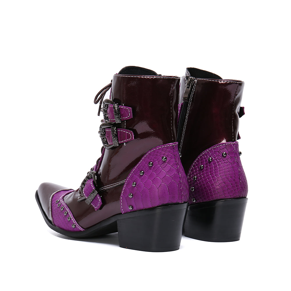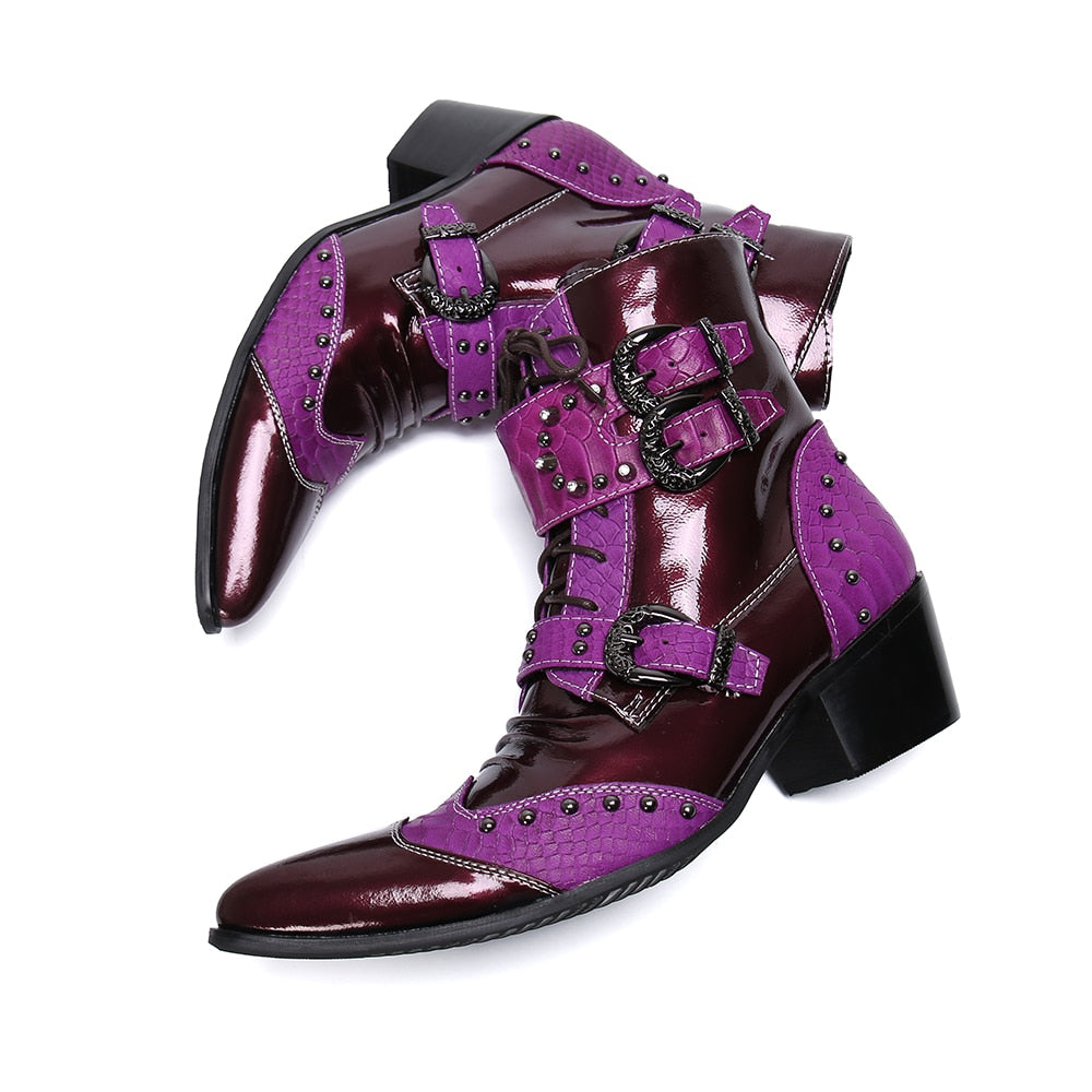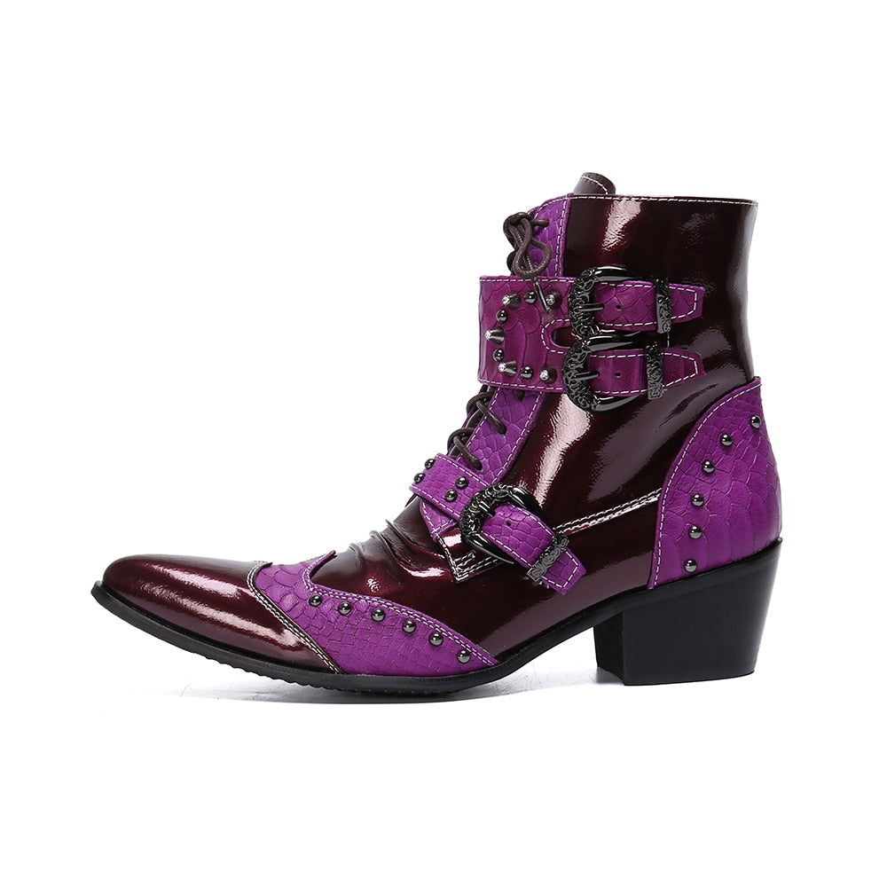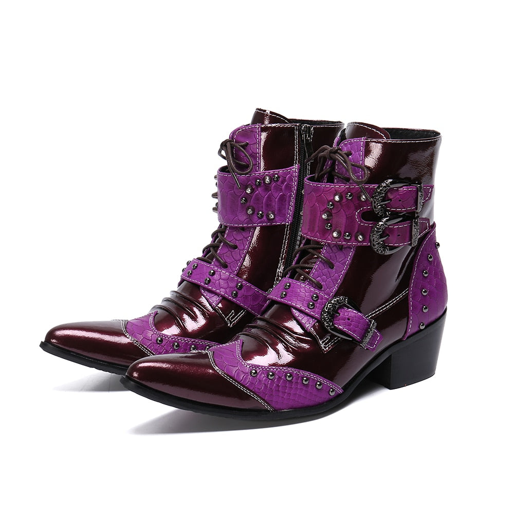 Winter Fashion Men Boots Rivets Patchwork Genuine Leather Mid-boots Male Lace Up Motorcycle Boots Plus Size Shoes