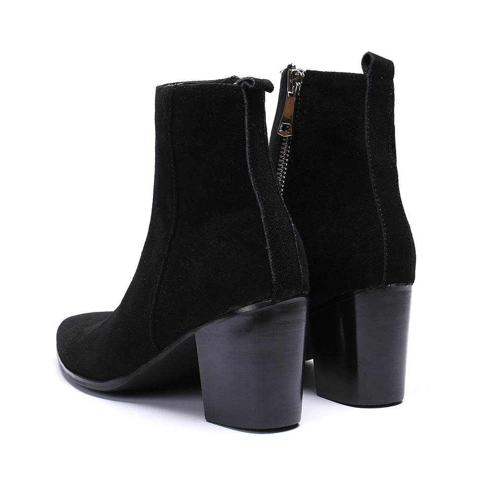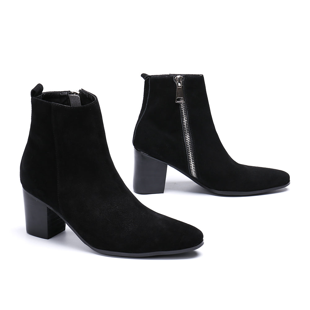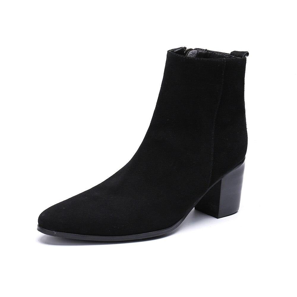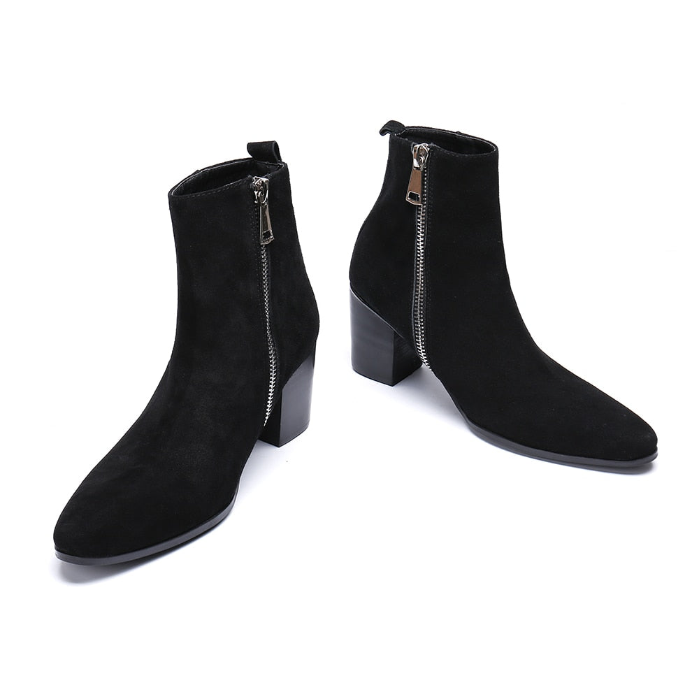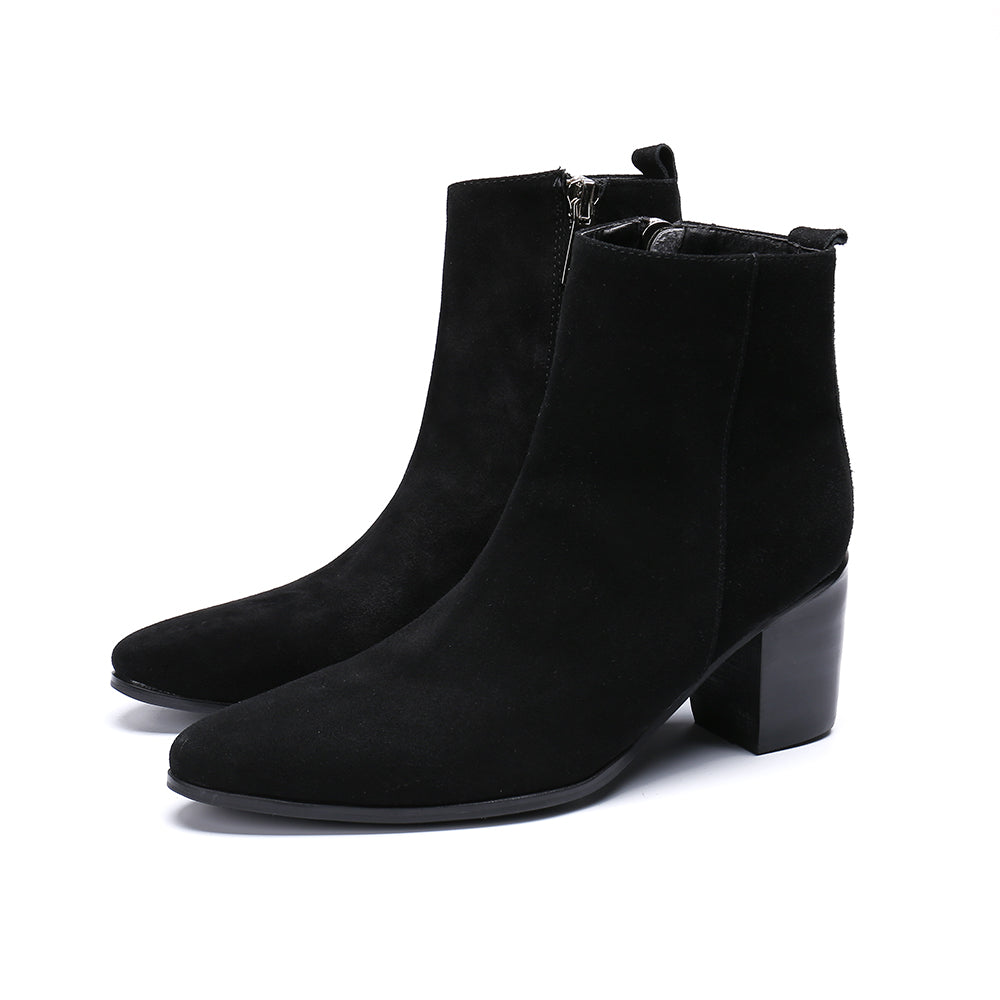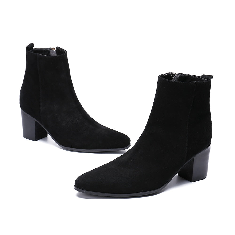 Winter Men Dress Boots Suede Leather High Heel Boots Black Pointed Toe Ankle Boots Large Size Formal Party Shoes