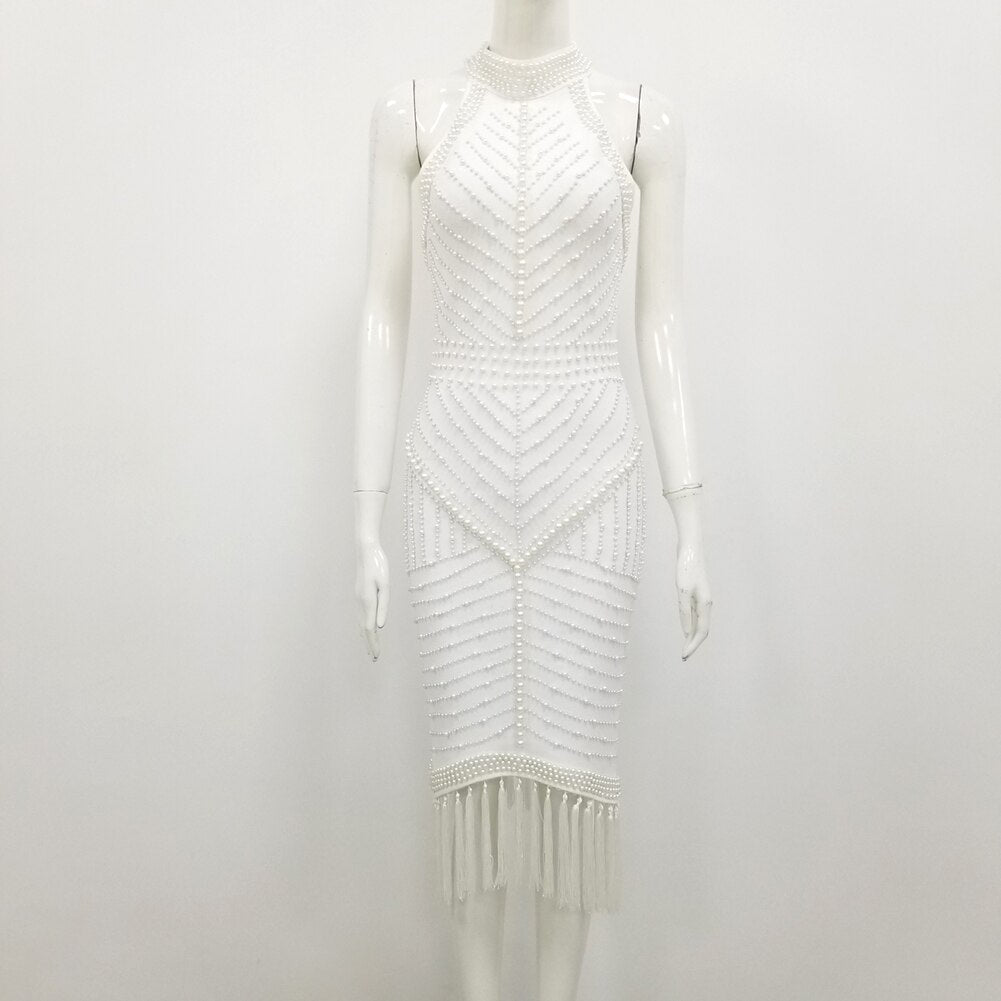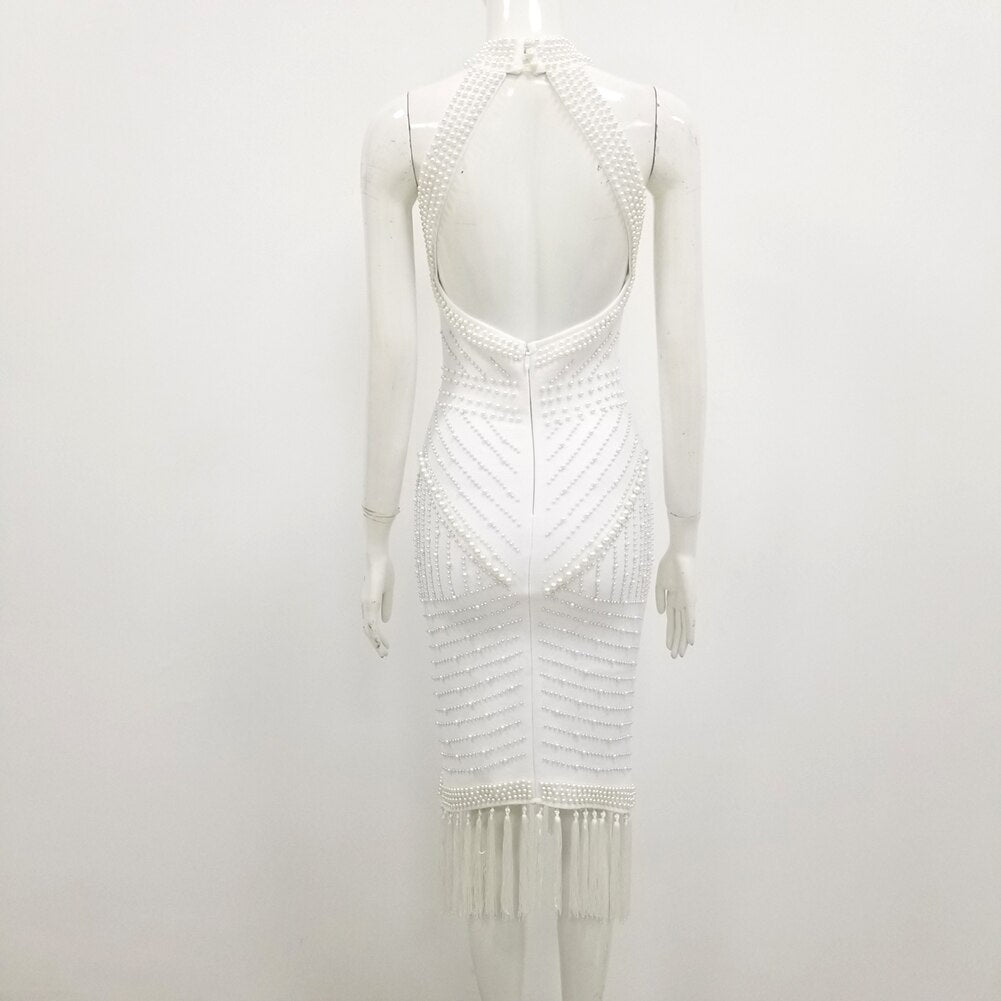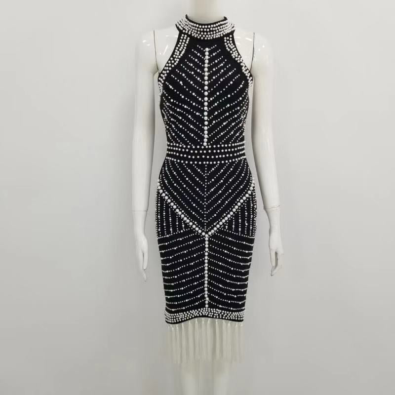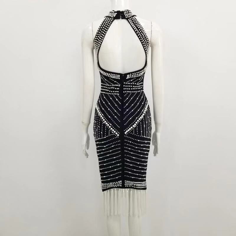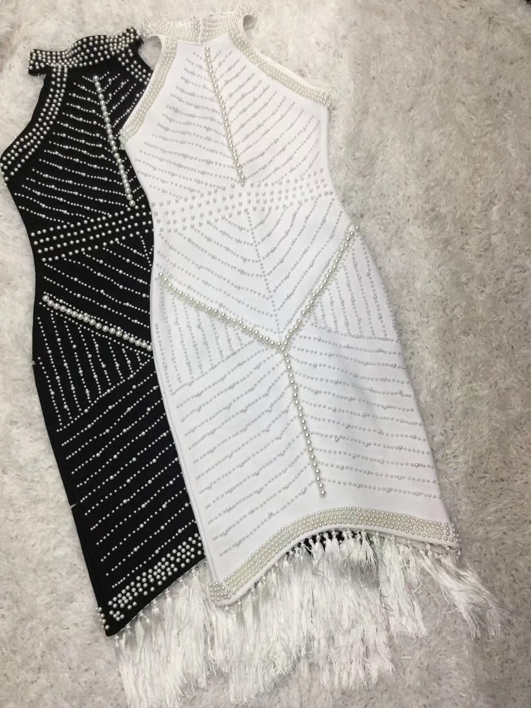 Dress Sexy Backless Beading Black White Tassel Women Dress Designer Fashion Party Dress Vestido