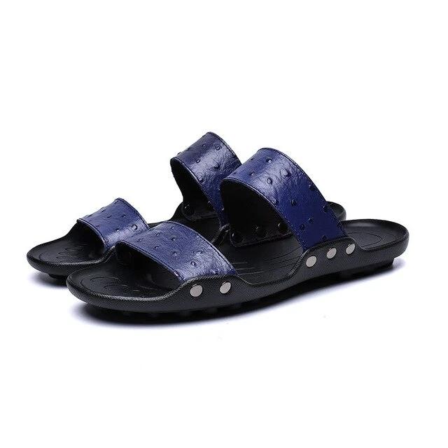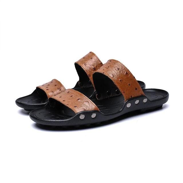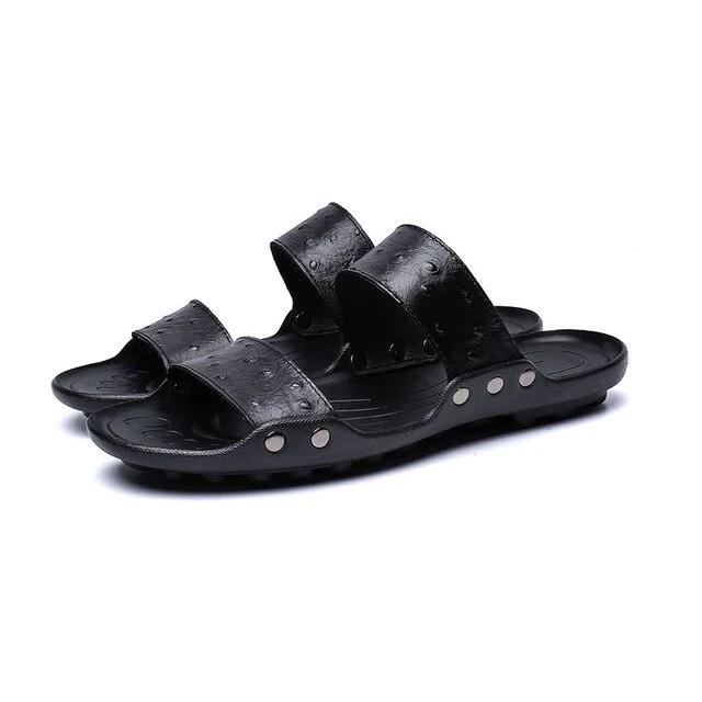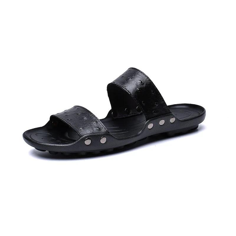 Genuine Cow LeatherCasual Men Sandals Summer Tide Mens Slippers Rivet British Man Beach Sandals