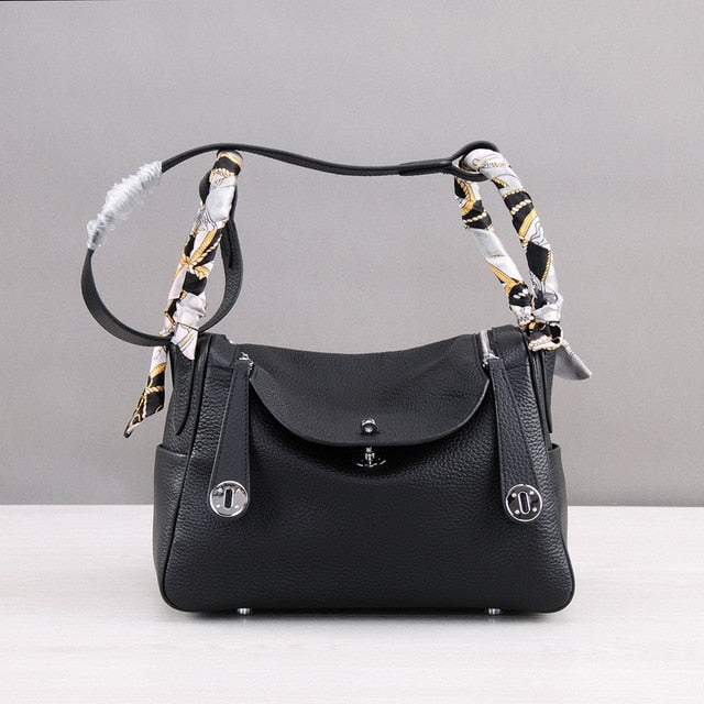 Classic cowhide genuine leather luxury brand style women handbag shoulder bags high quality bag