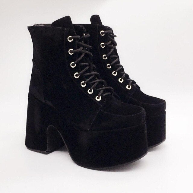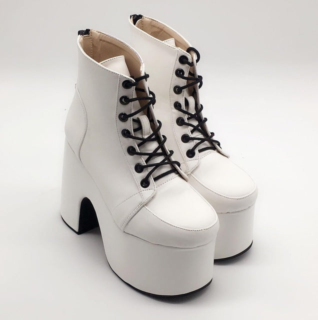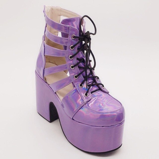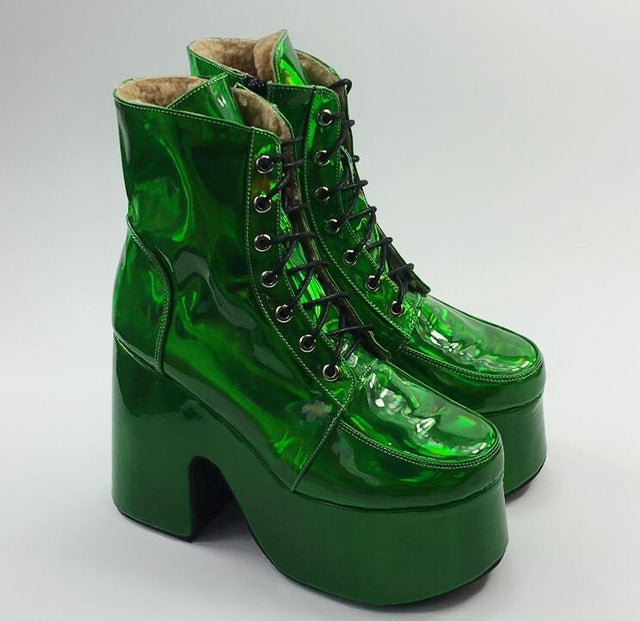 Colorful 10cm Laser Women's Ankle Boots High Heel Platform Winter Lace Up Chunky Heel Short Boots Back Zip