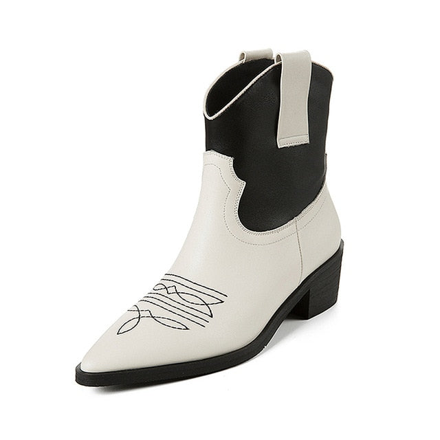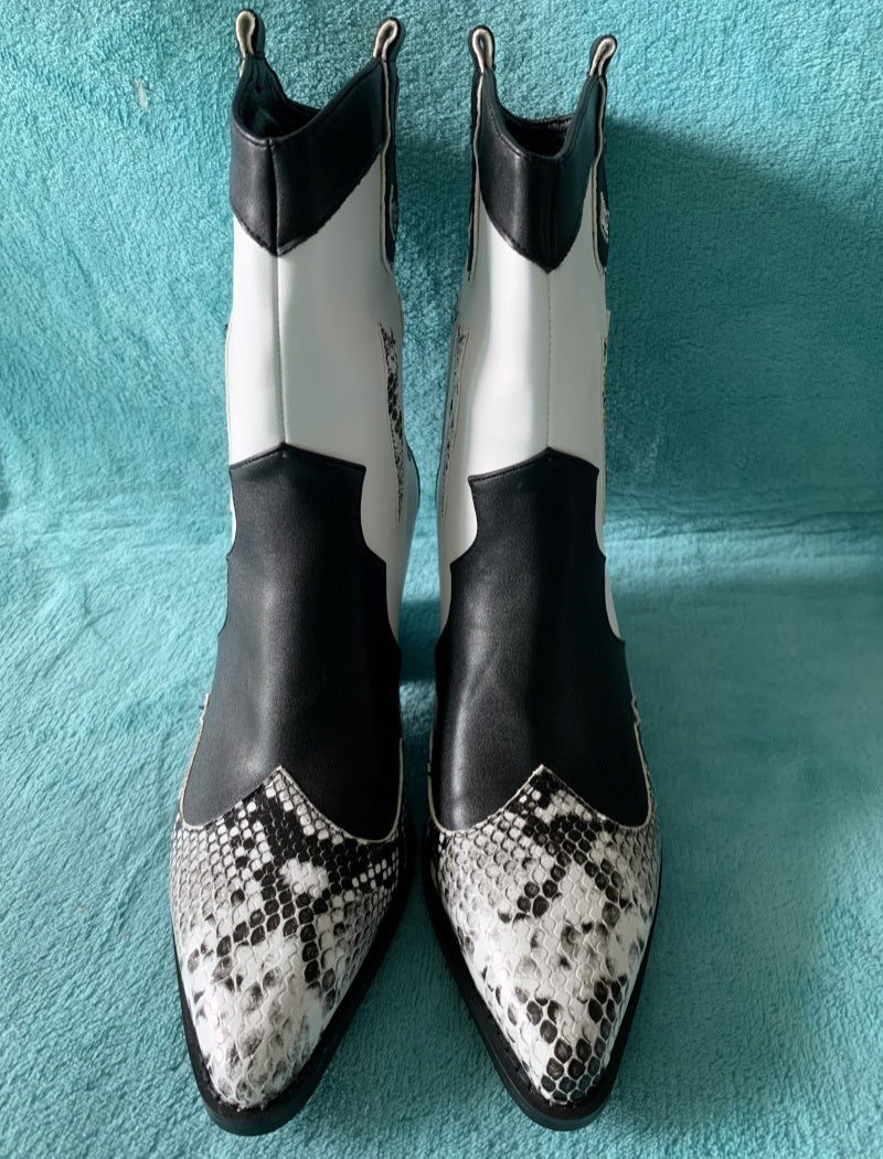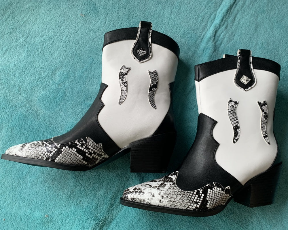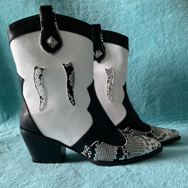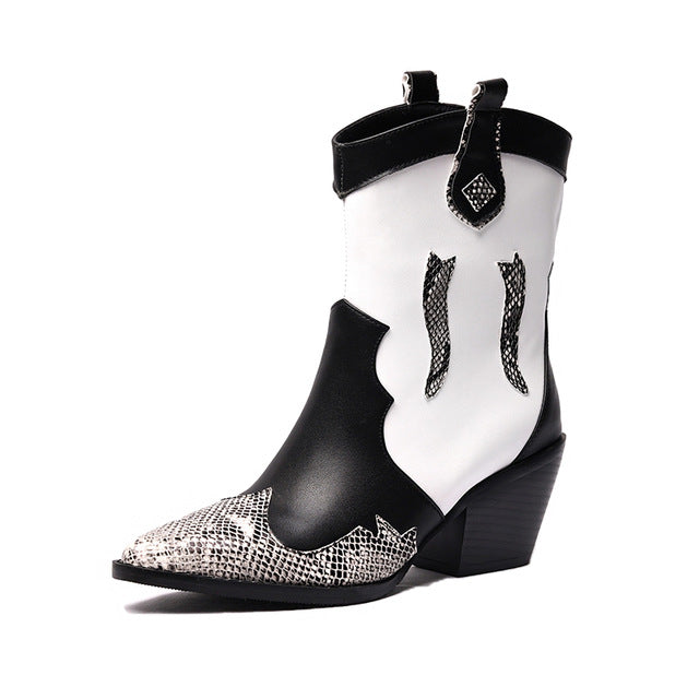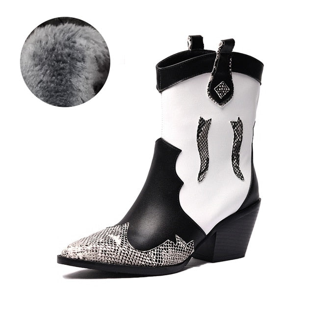 Mixed Colors PU Leather Cowboy Ankle Boots Women Wedge High Heel Booties Snake Print Western Cowgirl Boot Female
