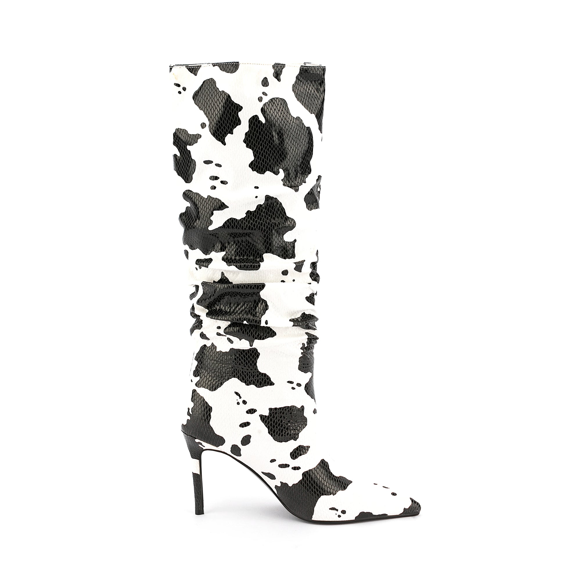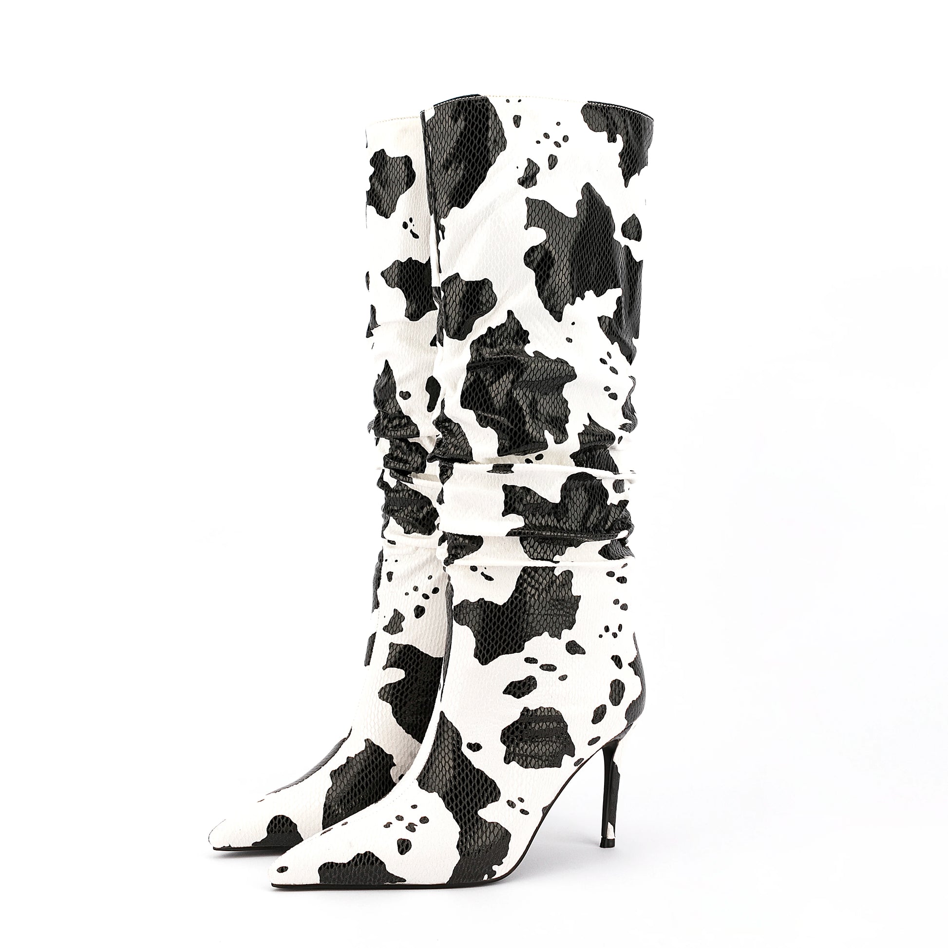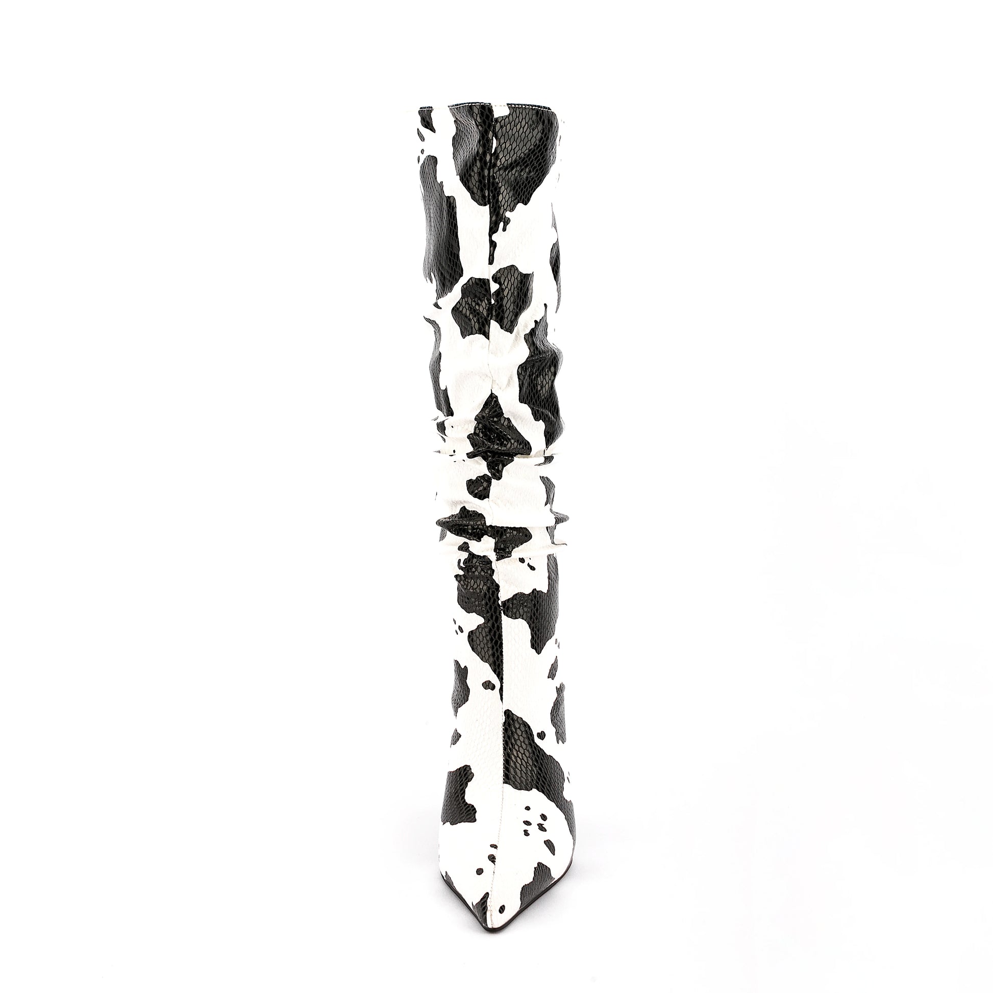 Cow grain Pointed toe Slip-on Super high heel Pleated Middle boots Mixed Colors Modern boots