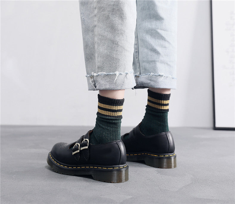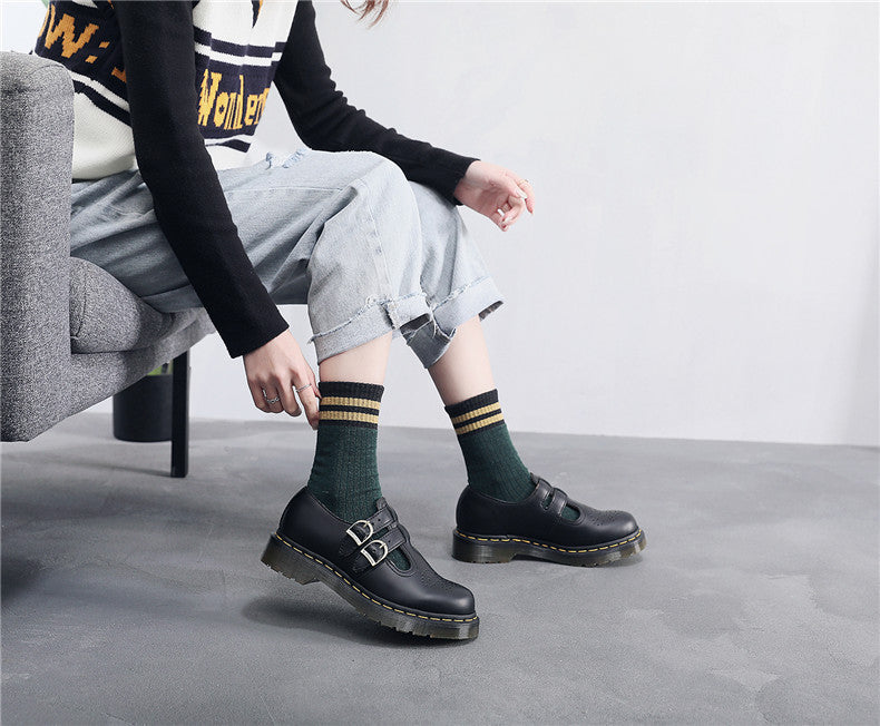 Cow Leather Mary Jane Shoes Women Copper Double Buckle