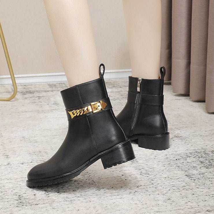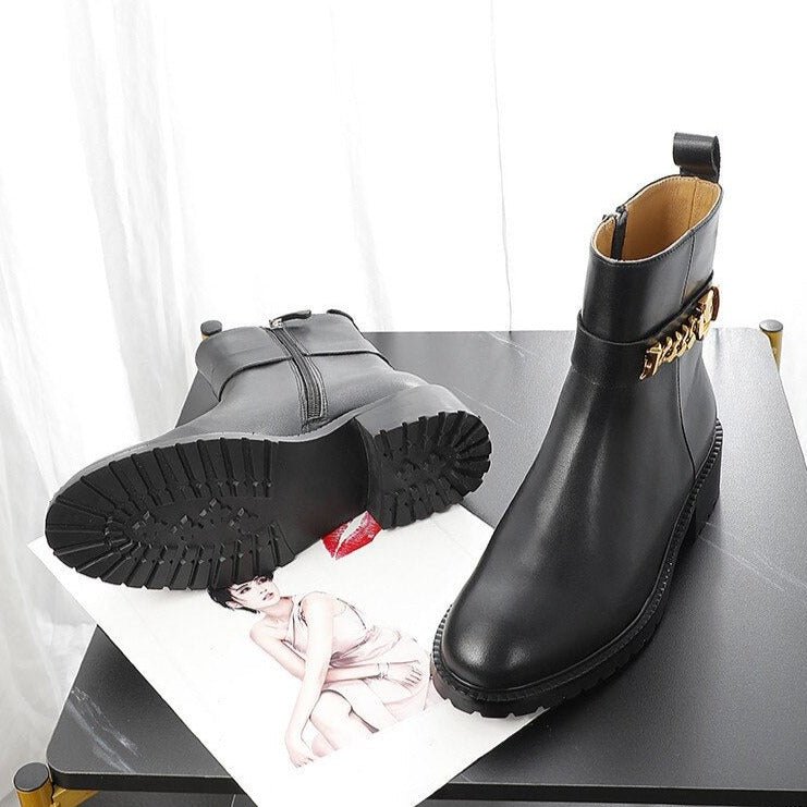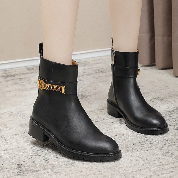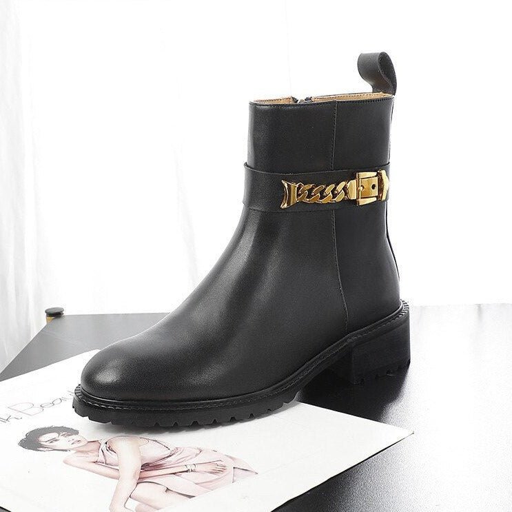Cow Leather Metal Chain Chelsea Boots Women Chunky Shoes