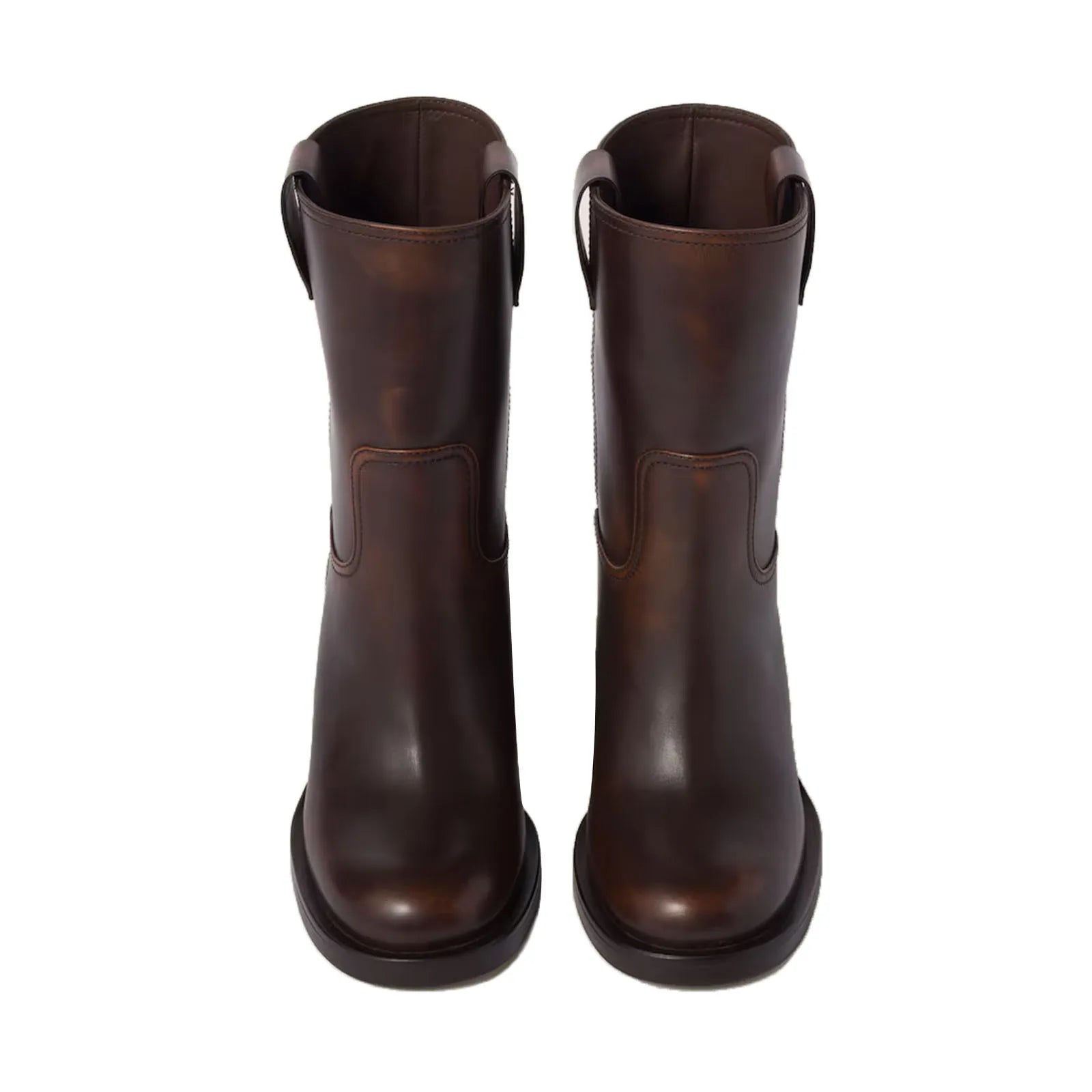 Cowhide Ankle boots Black Round toe Pull-on Chunky heels Modern boots simple style large size boots