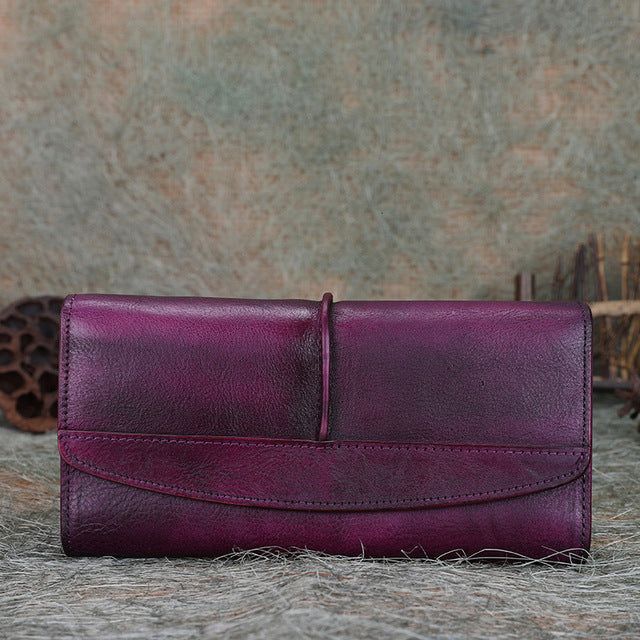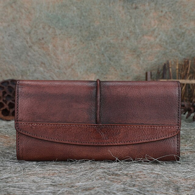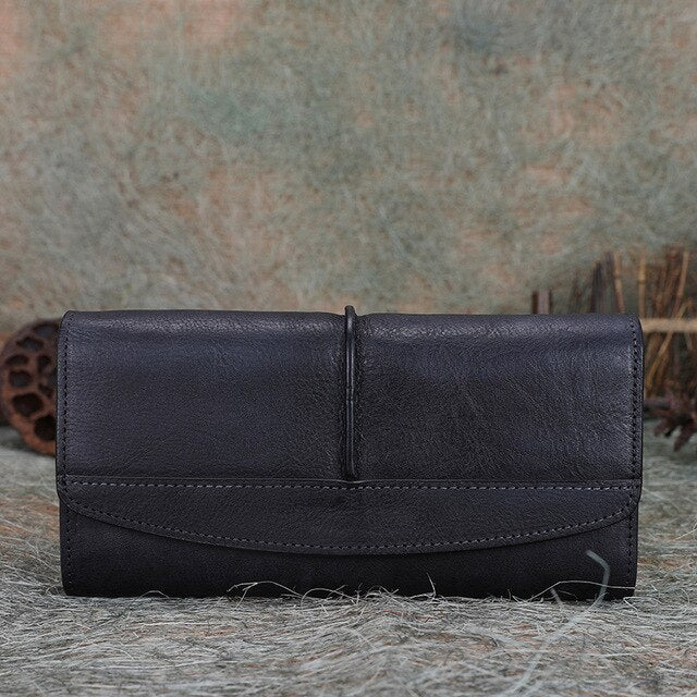 Cowhide Leather Trifold Wallet Women Long Genuine Leather Female Clutch Purse Hasp Female Phone Bag Girl Card Holder Pouch