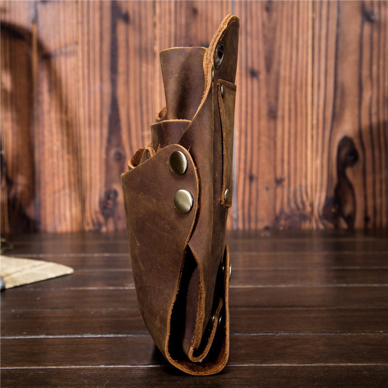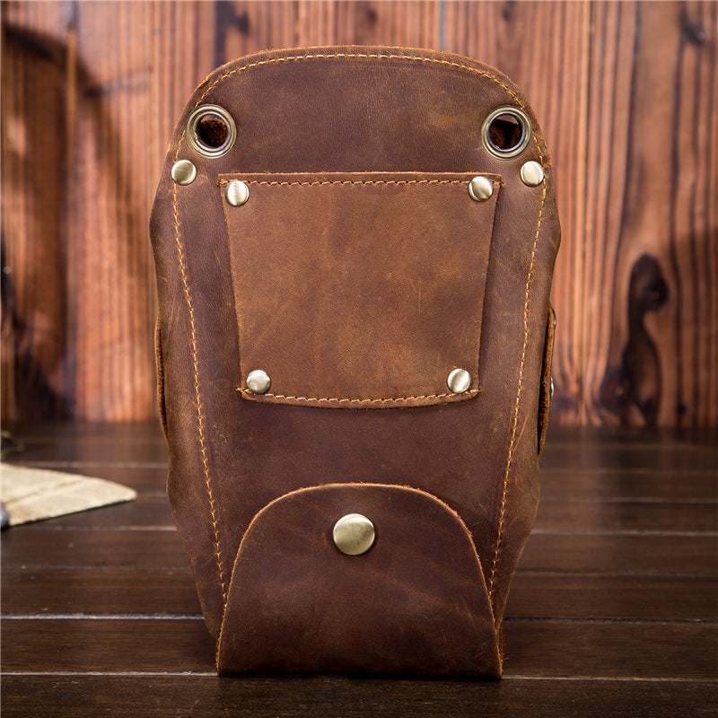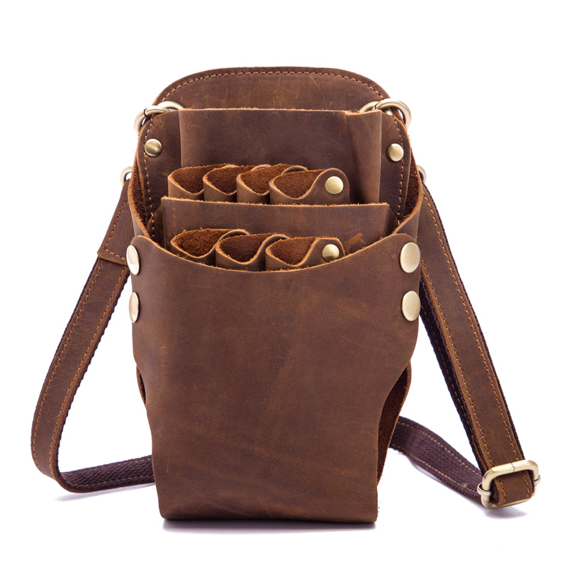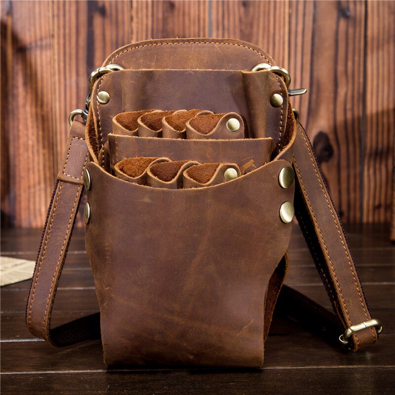 Crazy Horse Genuine Cowhide Leather Stylish Barber Salon Hairstyle Hair Scissors Tool Kit Bag Shoulder Scissor Pouch Pocket