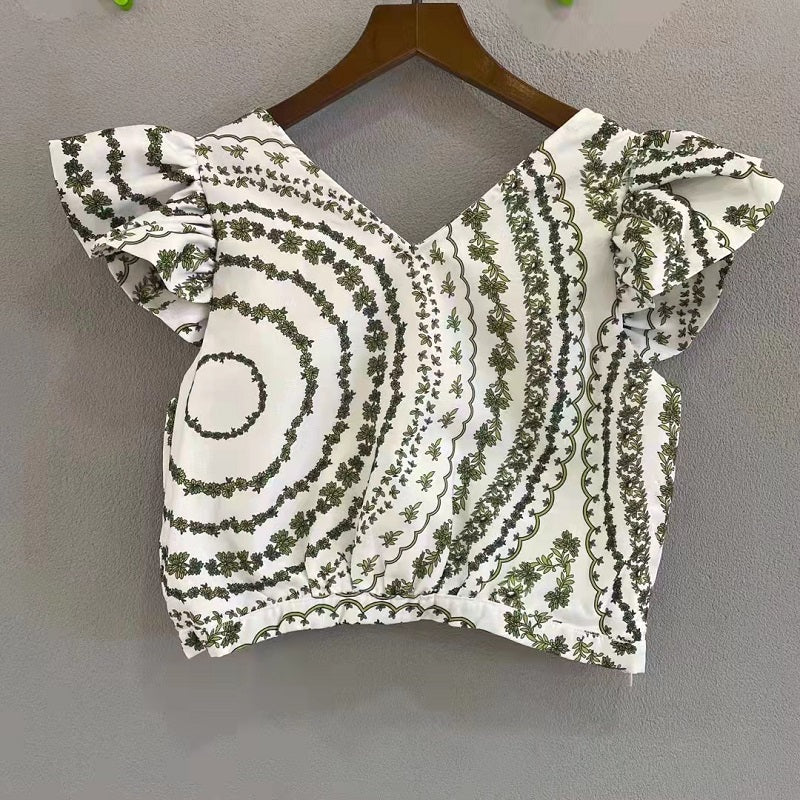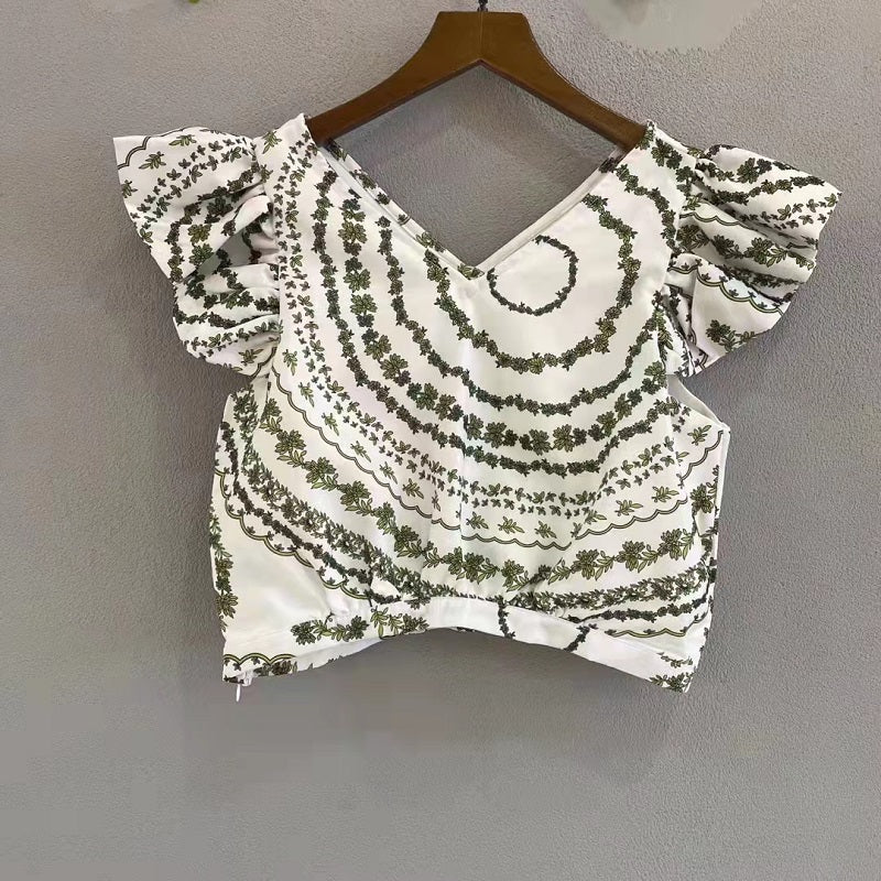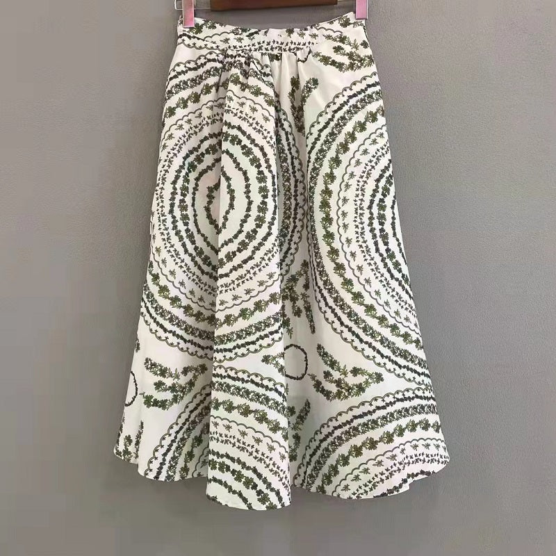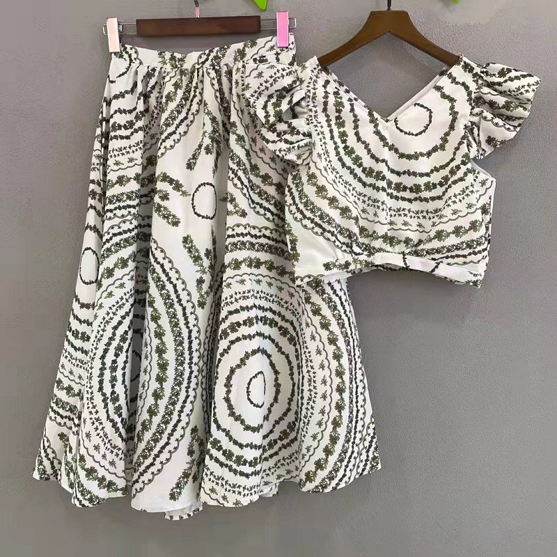 Crop Sets 2022 Spring Summer Fashion 2 Piece Skirt Suits High Quality Ladies V-Neck Vintage Print Crop Tops+A-Line Skirt Sets