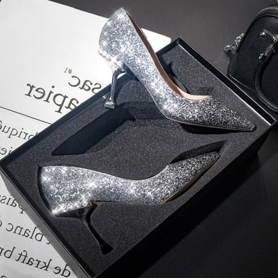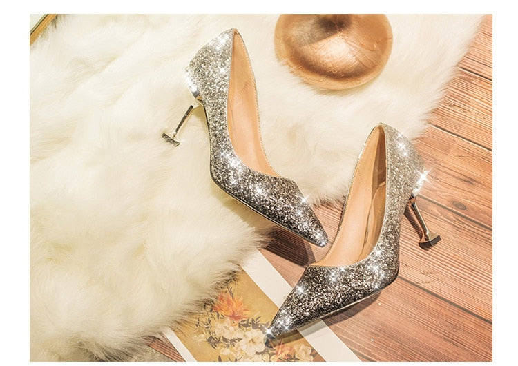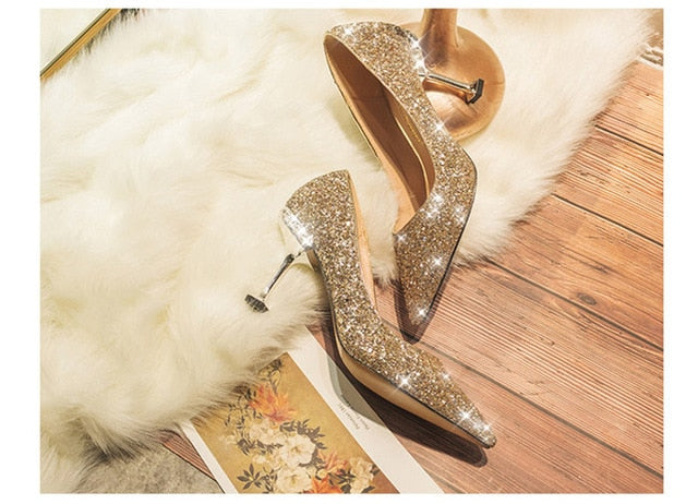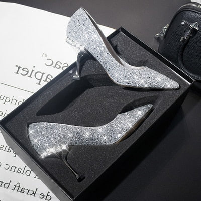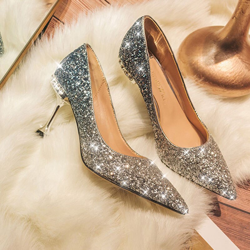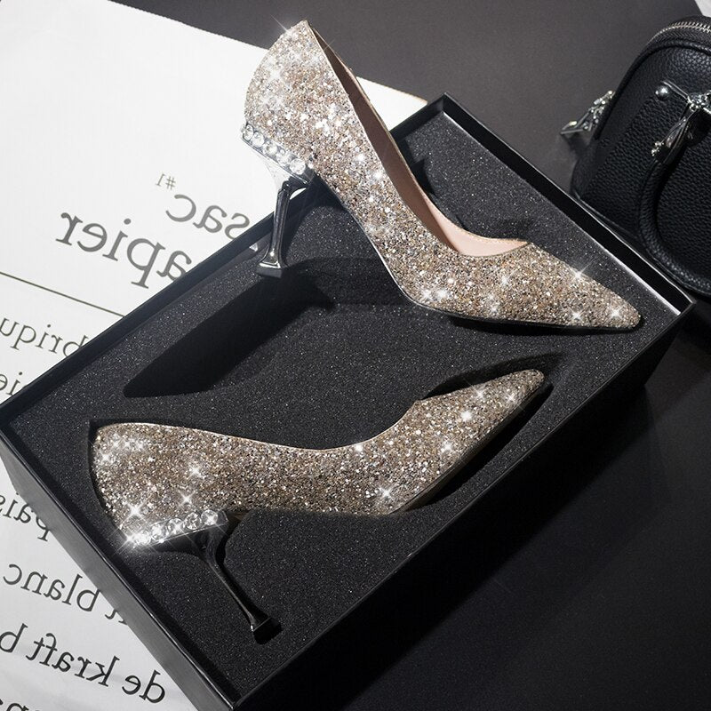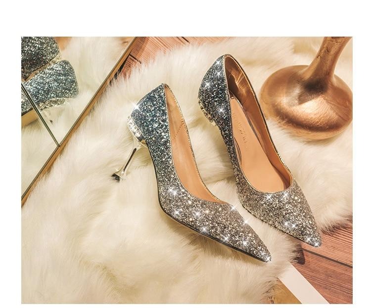 Crystal sequined wedding shoes high heel