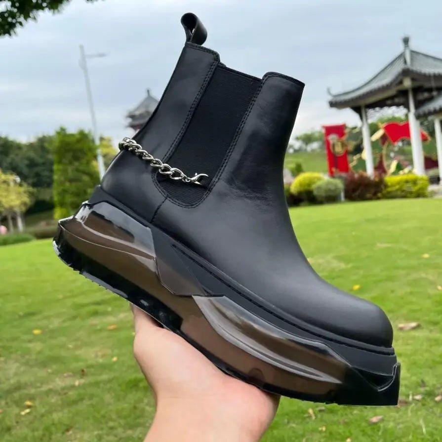 Crystal Sole Men Chain Boots Big Size Street Style Round Toe Shoes
