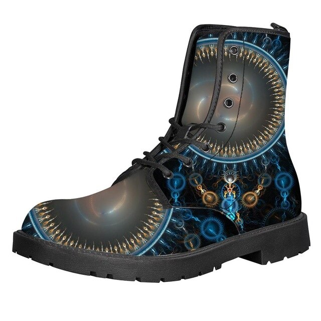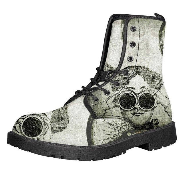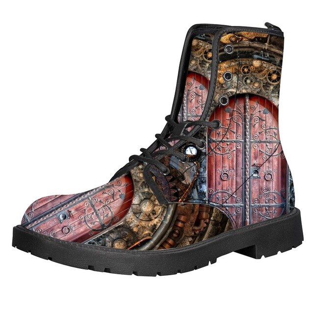 Steam Punk Print Women Martin Boot Platform Shoes Female Motorcycle Ankle Snow Boots For Woman Botas mujer