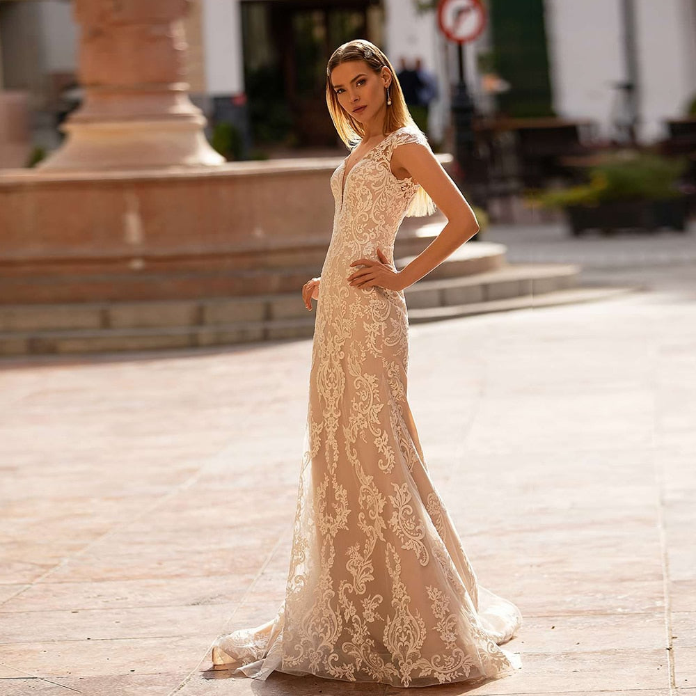 Custom Made Appliques Mermaid Wedding Dress With Beading Tulle Detachable Train 2 Pieces In 1 vestido de noiva 2 em 1