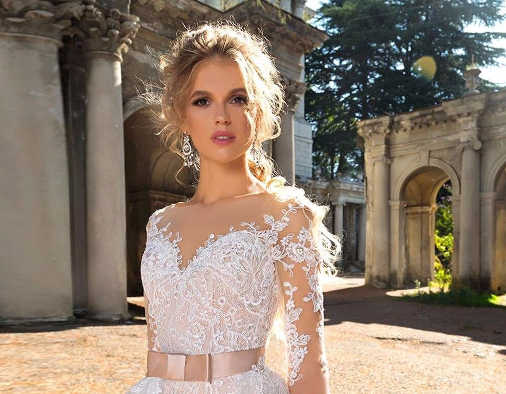 Long Sleeve Bow Appliques Lace Mermaid Wedding Dresses With Detachable Train