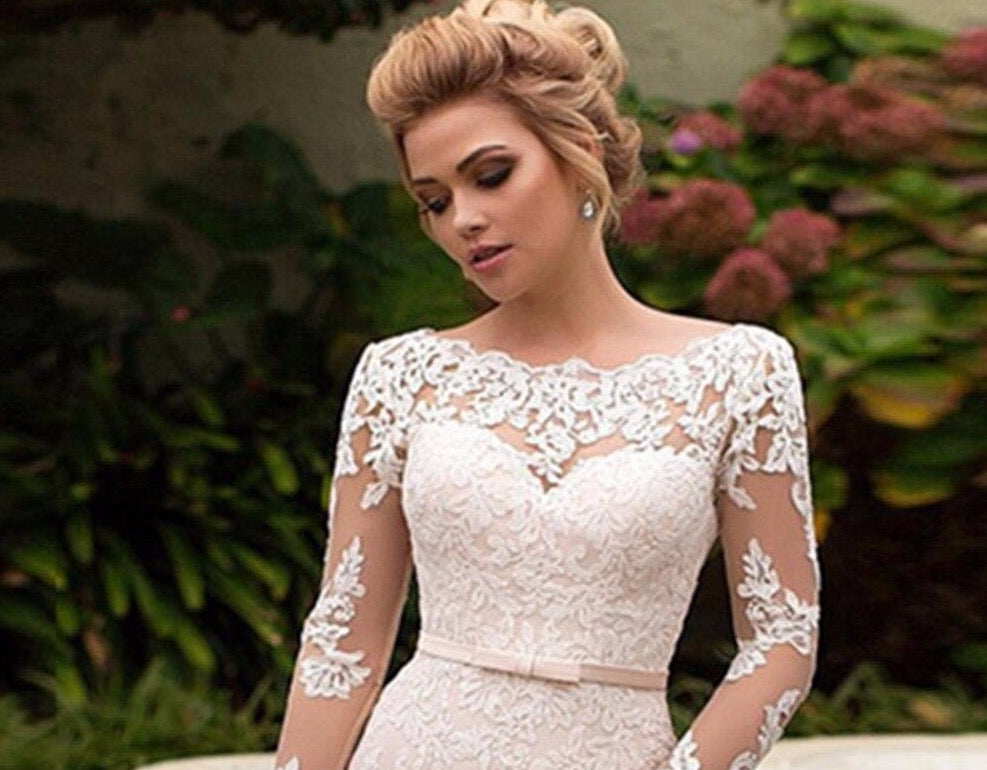 Long Sleeve Mermaid Wedding Dresses Vestido De Noiva Sereia Bow Appliques Trumpet Bridal Gowns