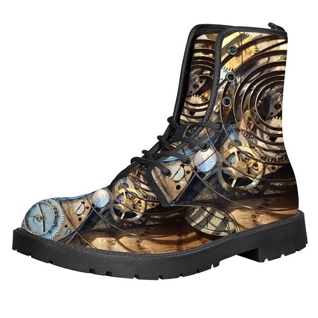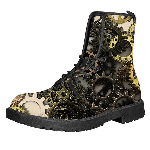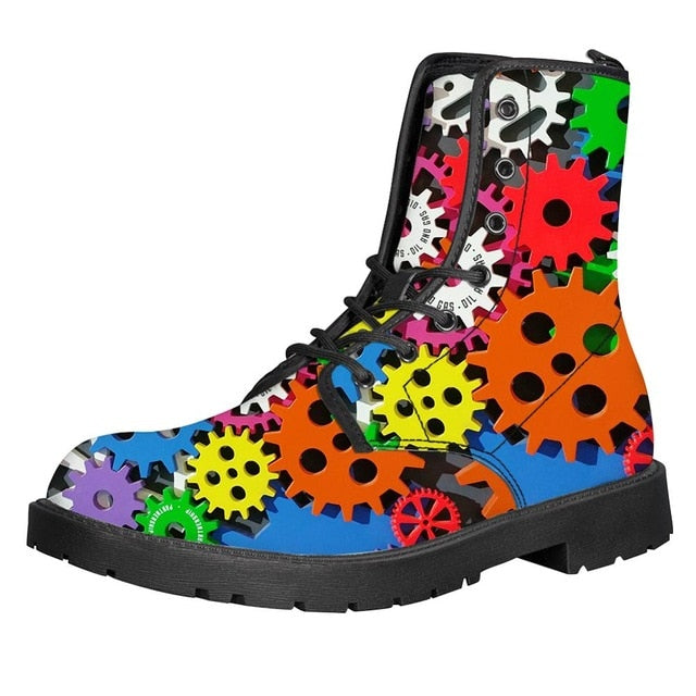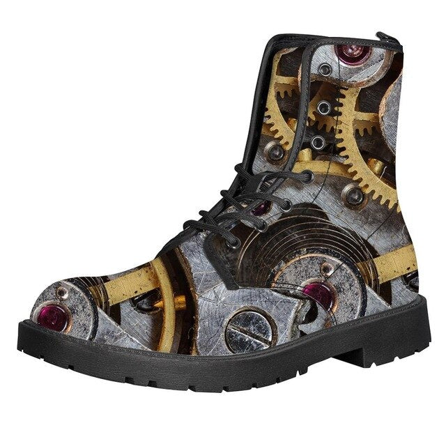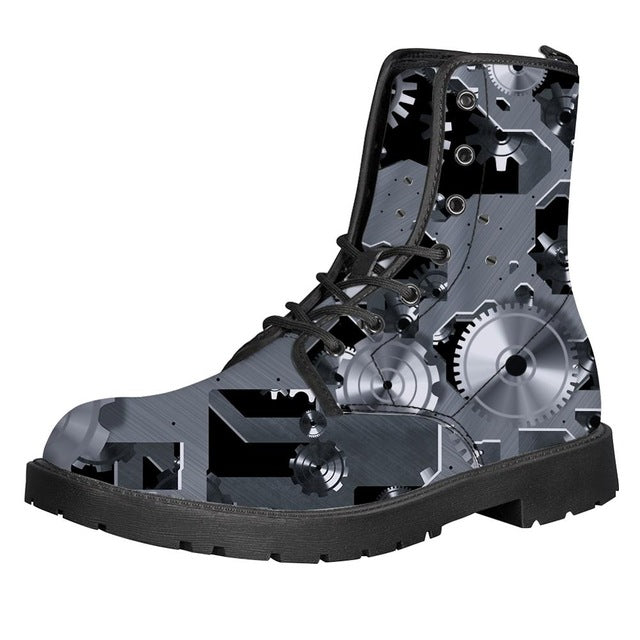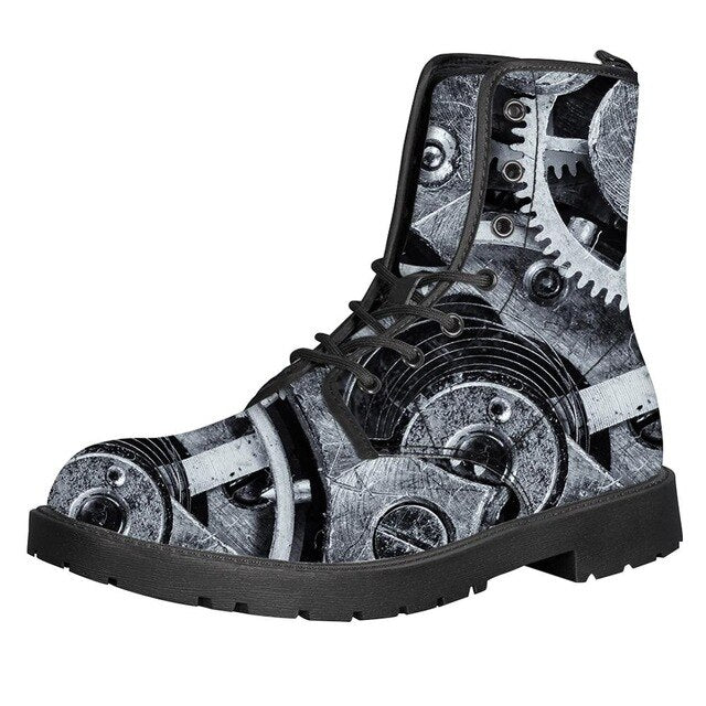 Gears Print Men Boots For Martin Boots Male Shoes Motocycle Boots Warm Ankle Boots Winter Shoes Men Shoe
