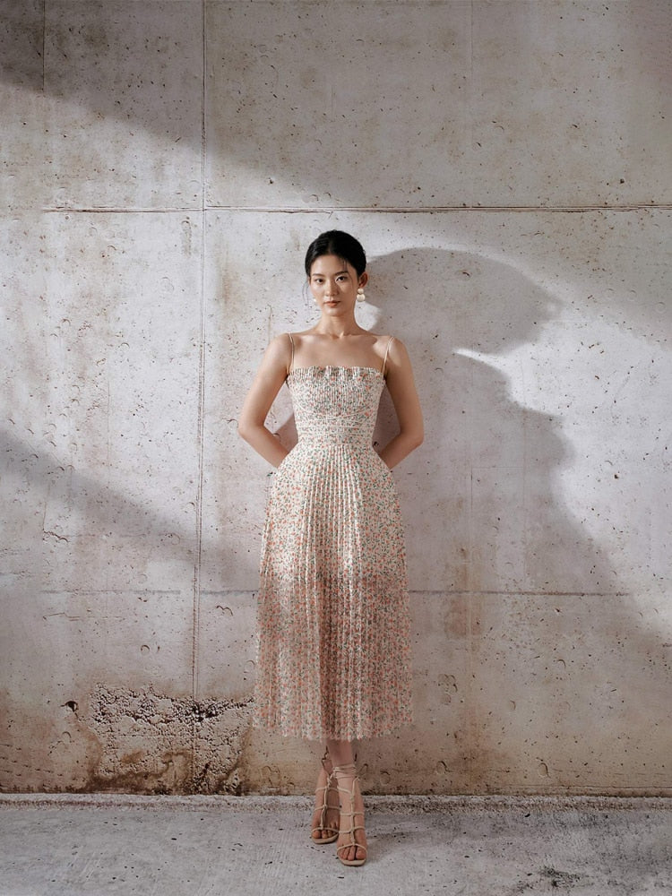 Casual Slash Neck Spaghetti Strap Backless Midi Printing Dress