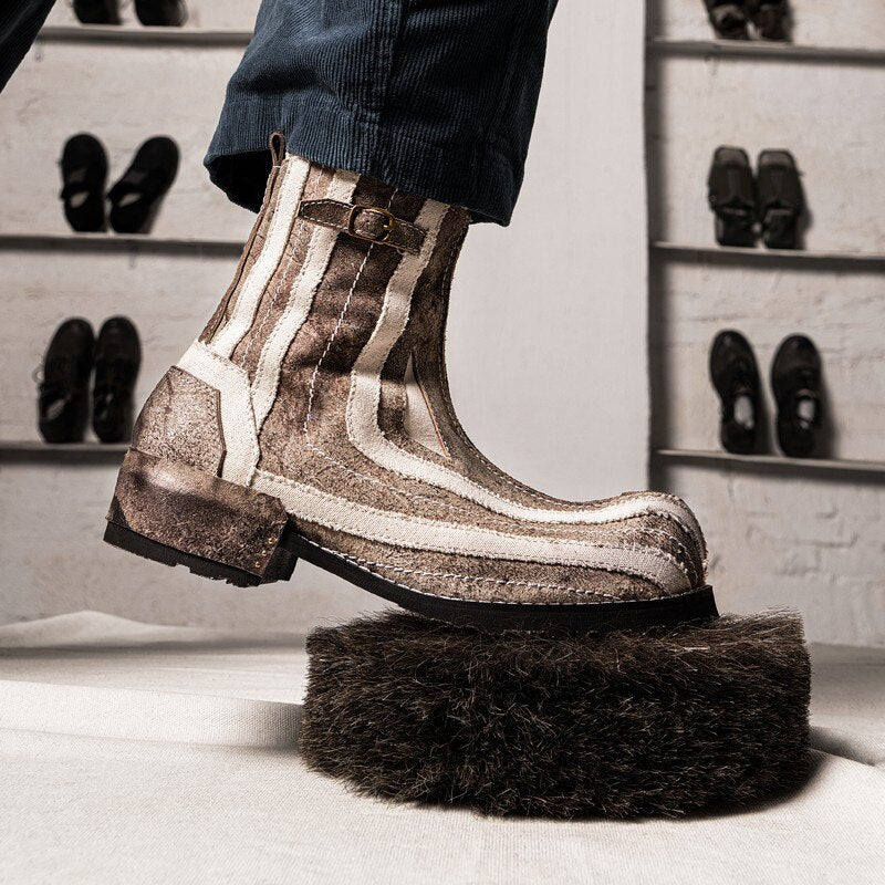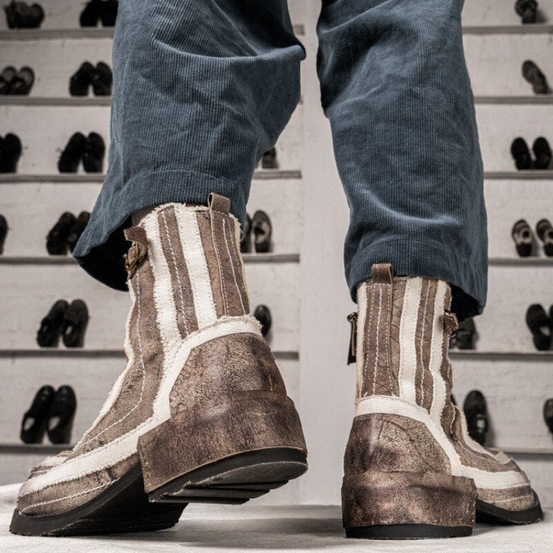 Men Retro Luxury Canvas Patchwork Work Safety Casual Boot