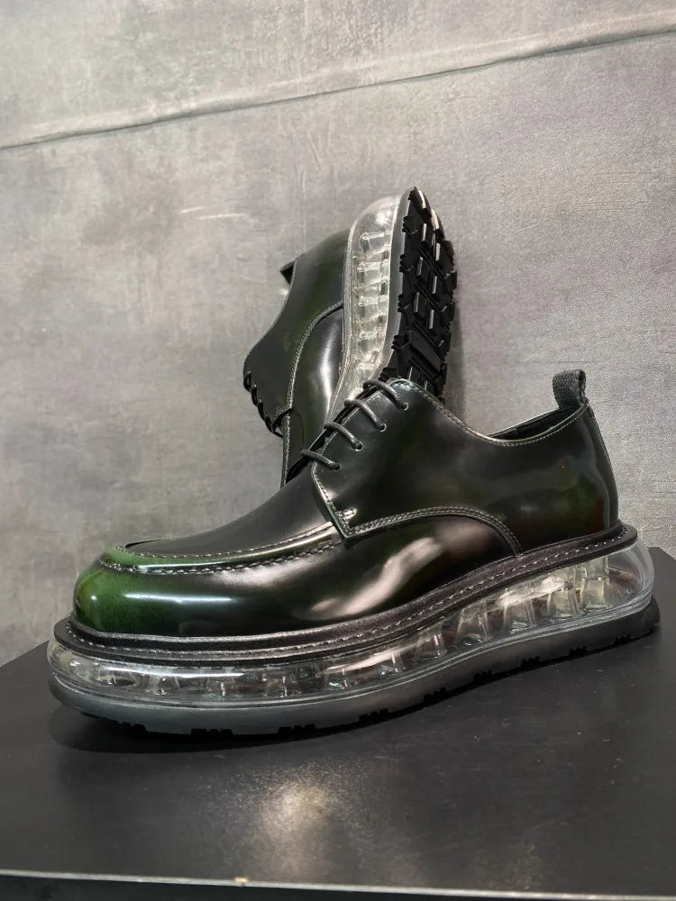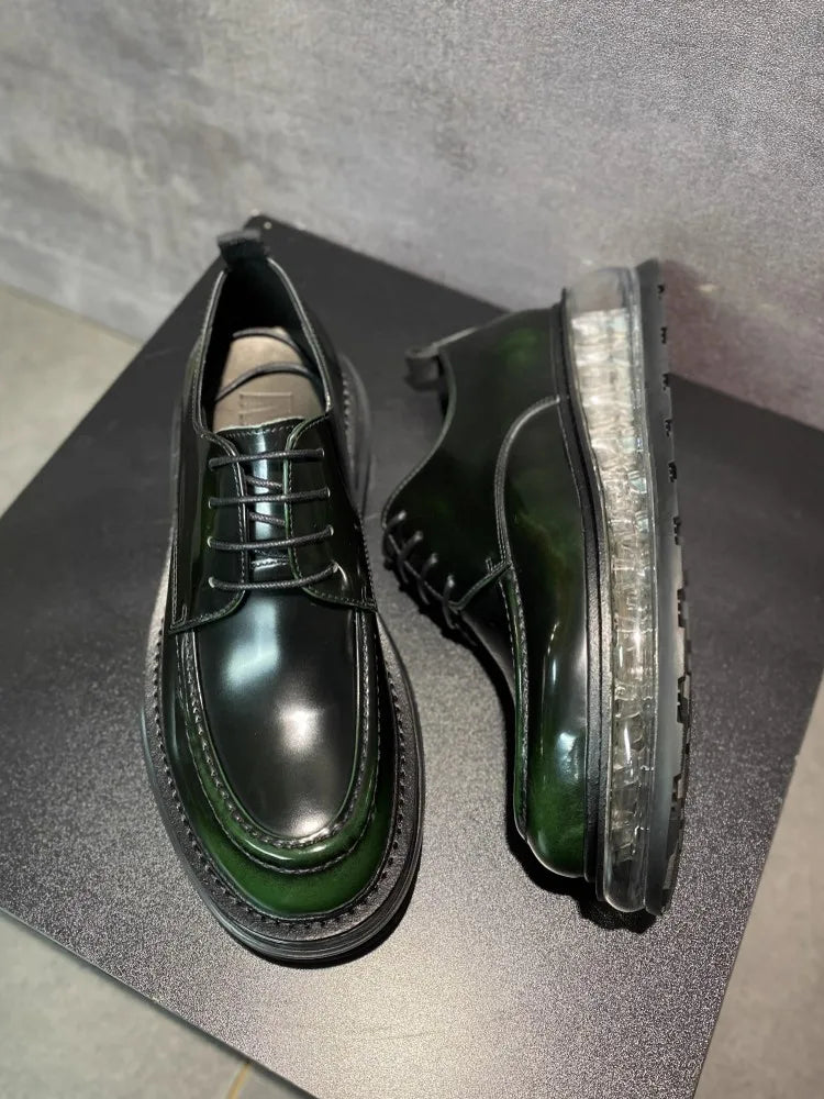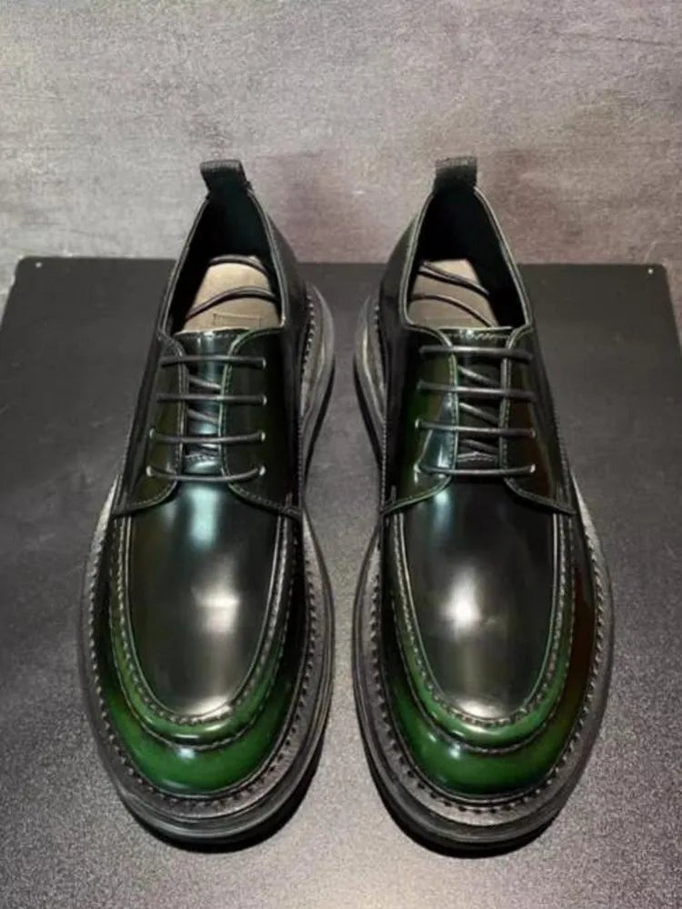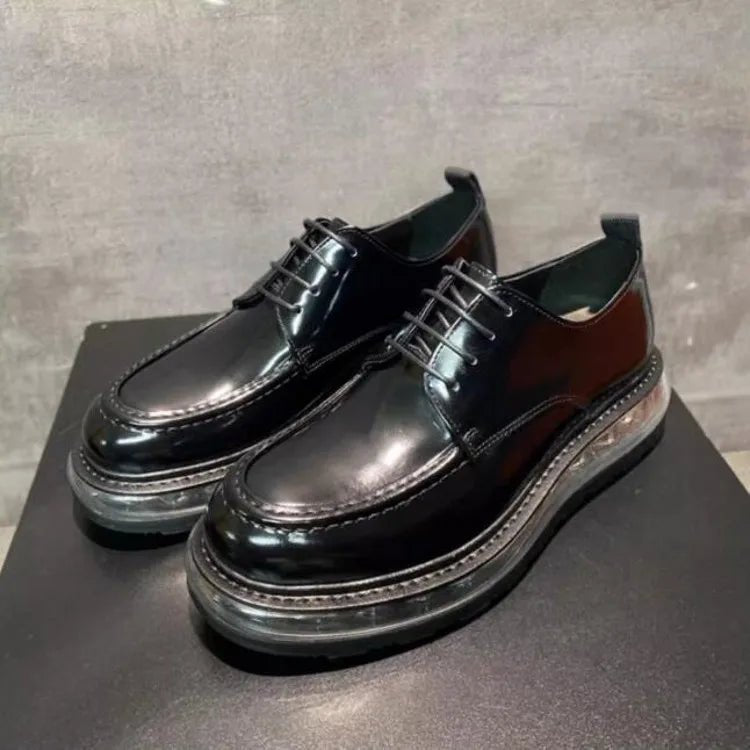 Designer Men's Formal Leather Derby Shoes with Thick Platform