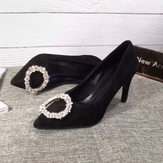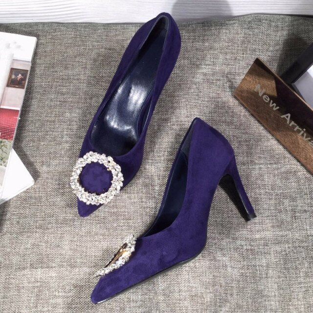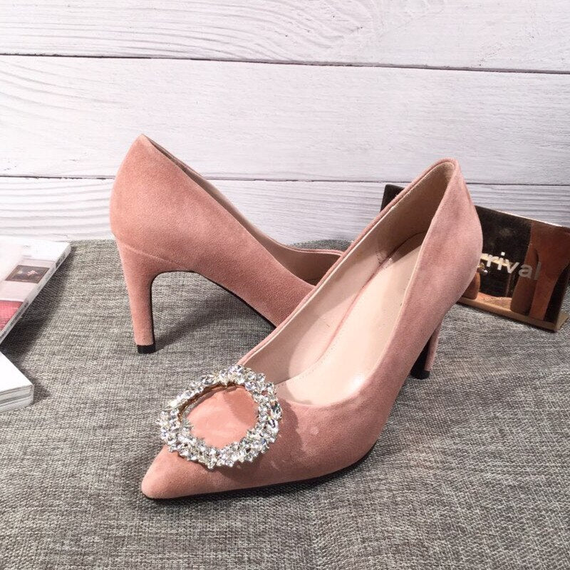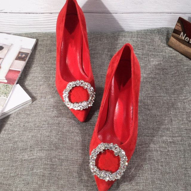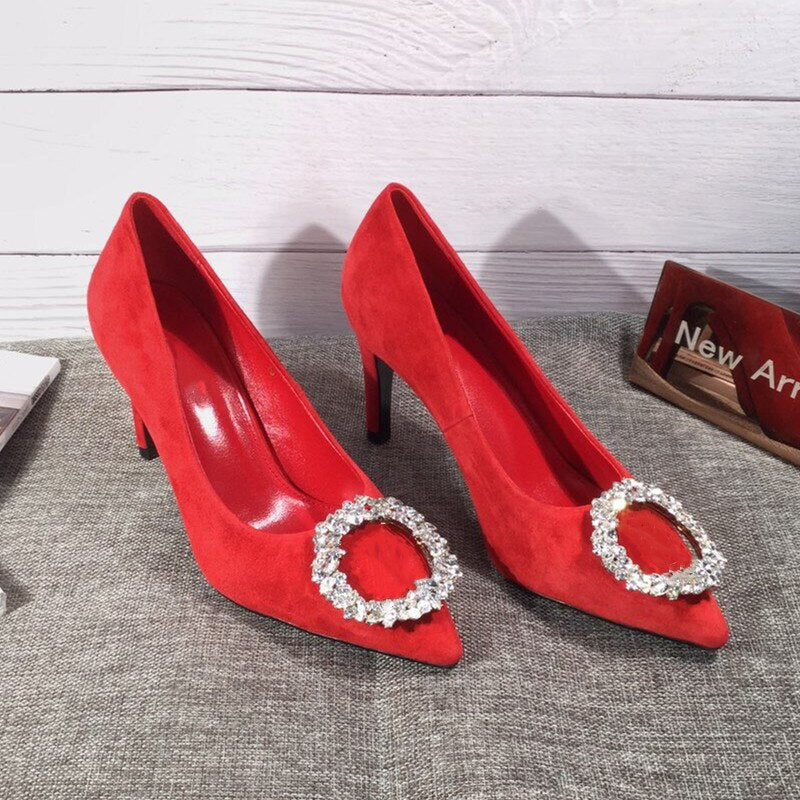 Diamond Decor Pumps Women Suede High Heels Wedding Shoes