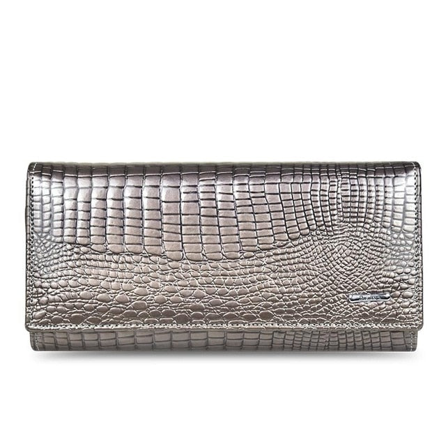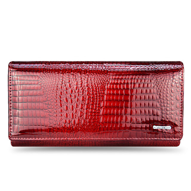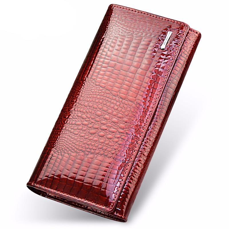 Genuine Leather Women's Wallets Fallow Long Ladies Double Zipper Wallet Clutch Bag Design Red Purse Crocodile Purses