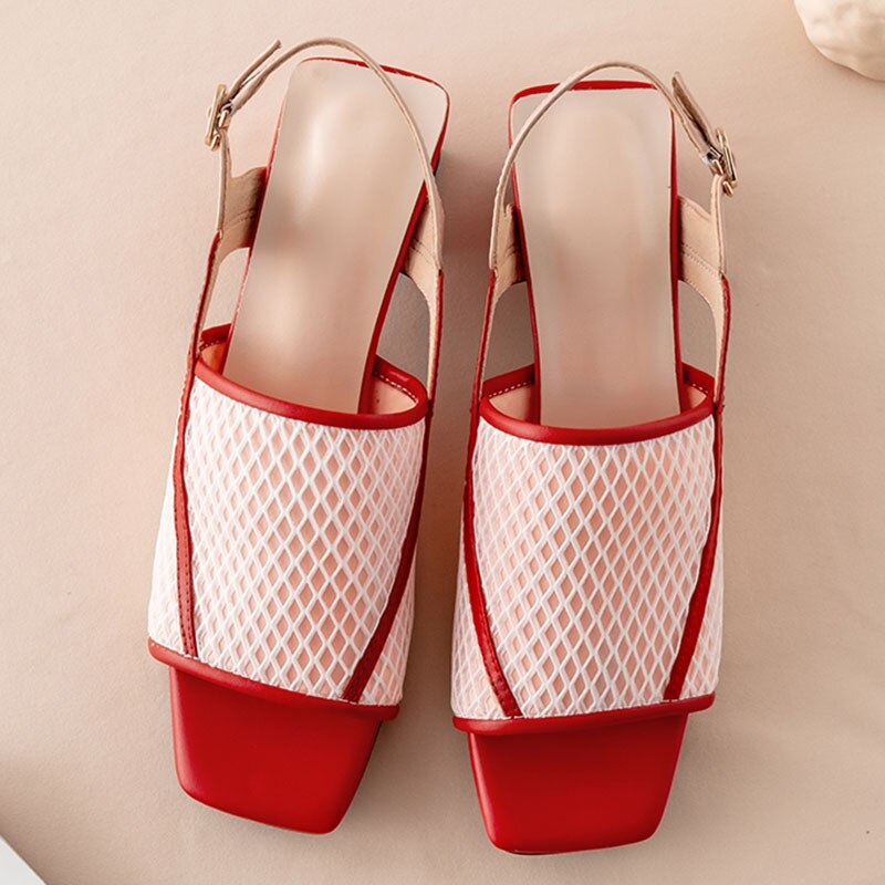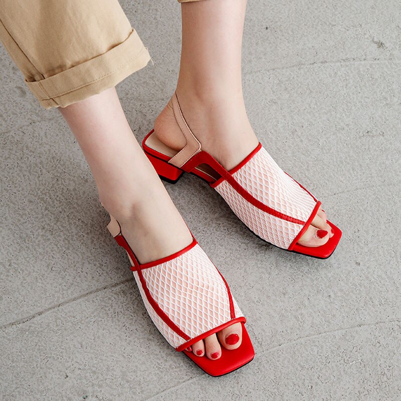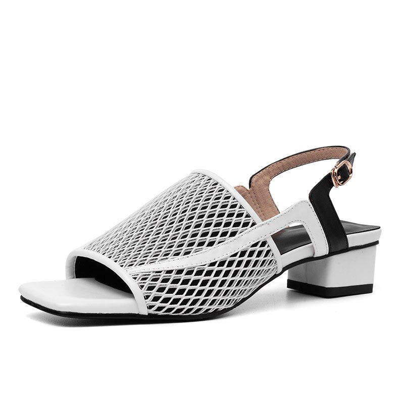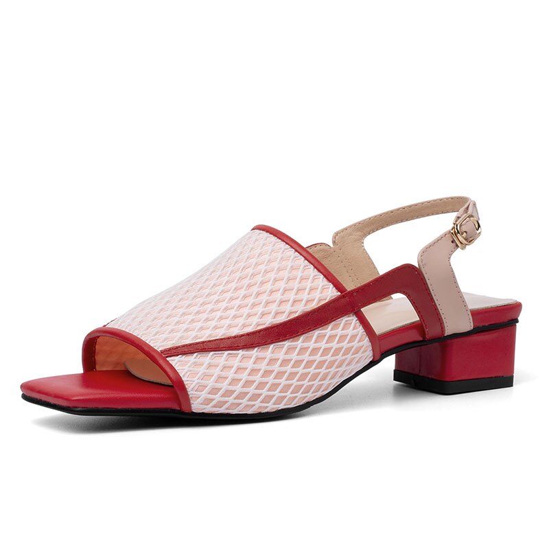 Genuine Leather Summer Party Elegant Women Shoes Air Mesh Woman Chunky Heel Sandals Shoes Woman