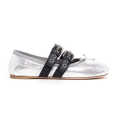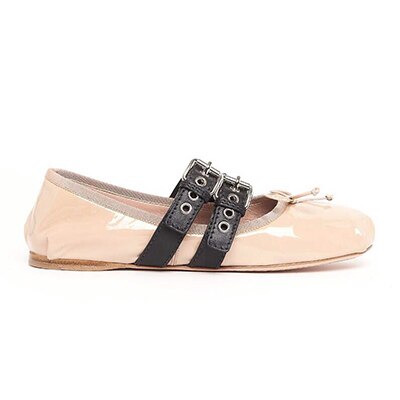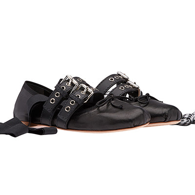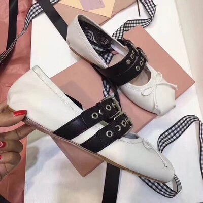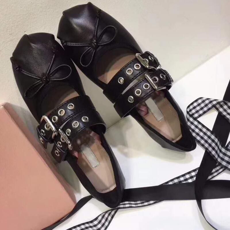 Double Buckles Decor Female Ballet Shoes Elegant Flats Butterfly-knot Leather Flat Shoes Woman Chaussures Femme New Casual Shoes