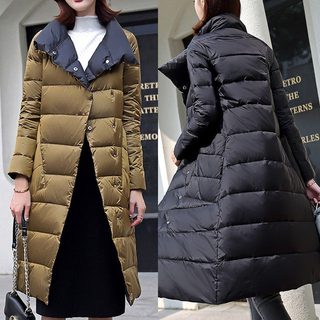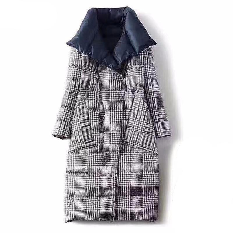 Double Sided Women's Down Jacket Long Winter Turtleneck White Duck Down Coat Female Double Breasted Plus size Warm Plaid Parkas