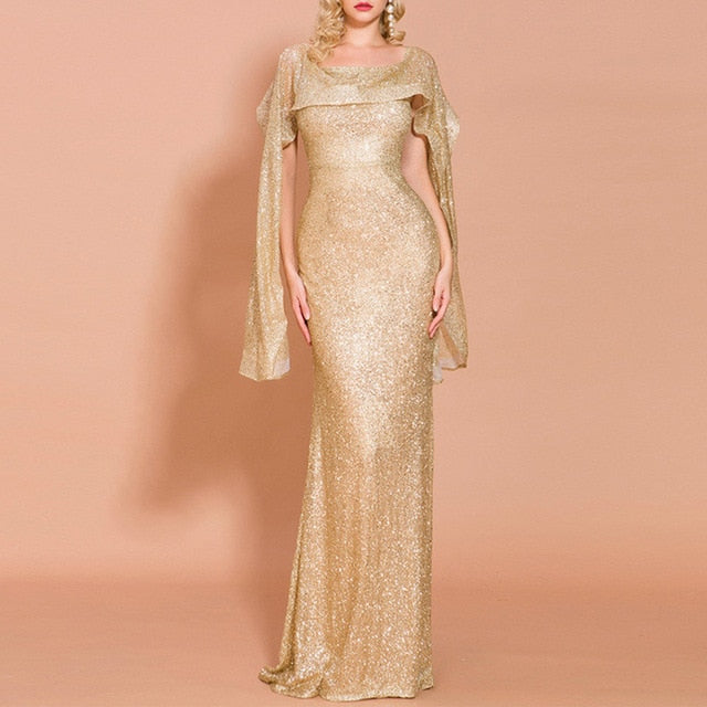 Golden Evening Dress Off The Shoulder Mermaid Floor Length Sequins Sleeveless Wedding Party Formal Evening Dresses