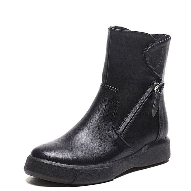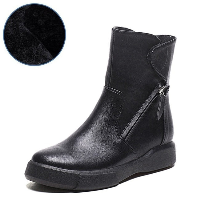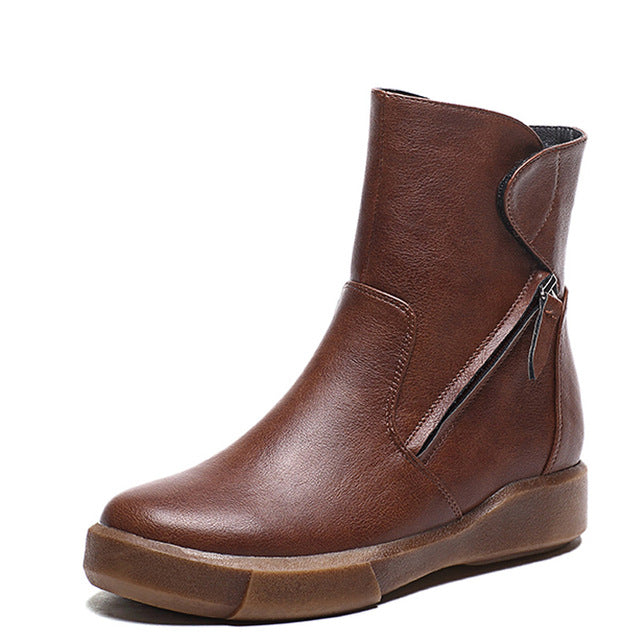 New Design Round Toe Women Ankle Boots Vintage PU Leather Short Plush Winter Warm Snow Boots Flats Martin Shoes