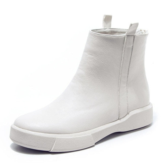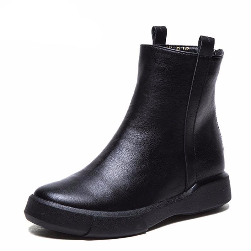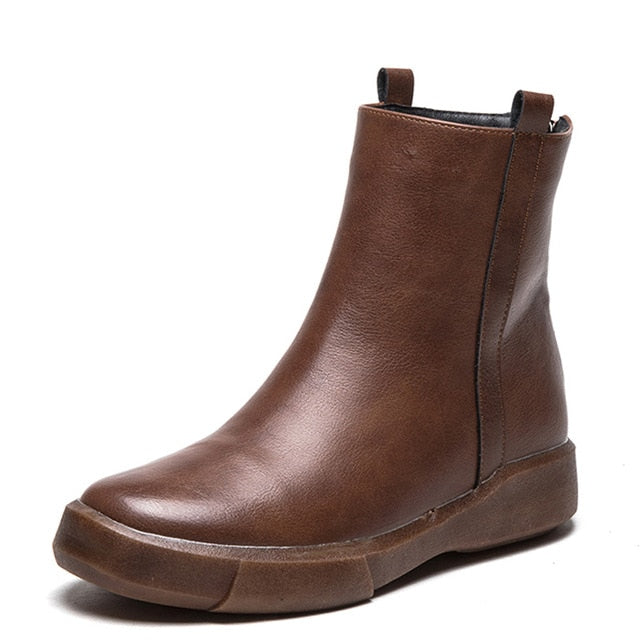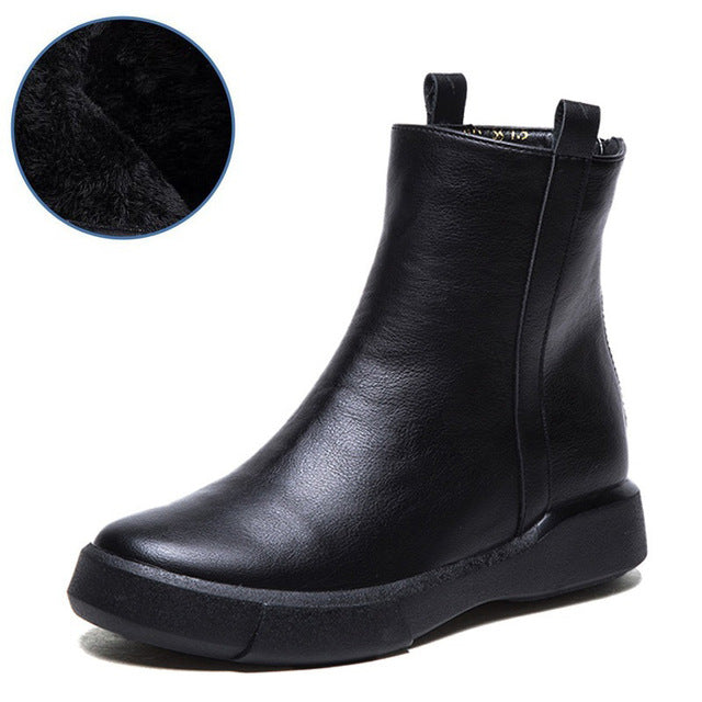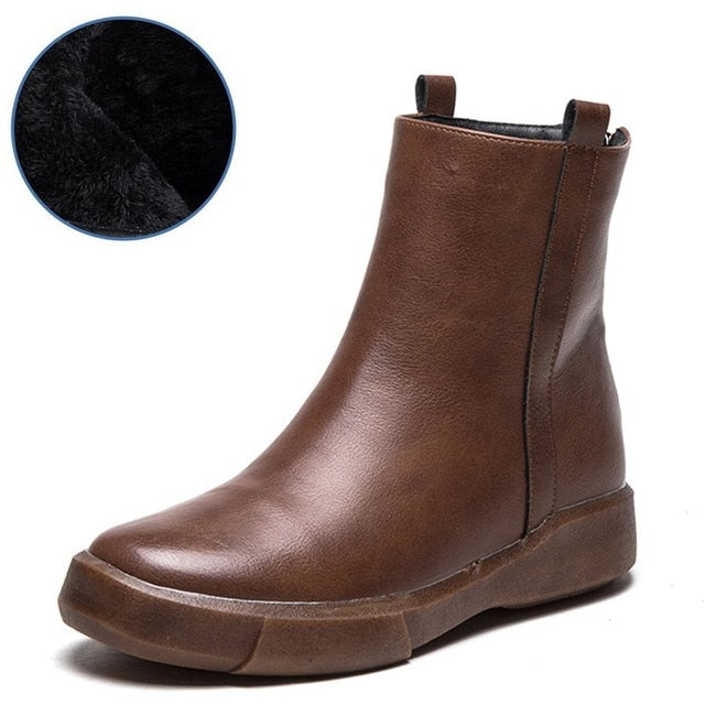 Vintage Flat Women Boots Autumn Winter Round Toe Back Zipper Winter Warm Waterproof Ankle Boots Women Platform Shoes