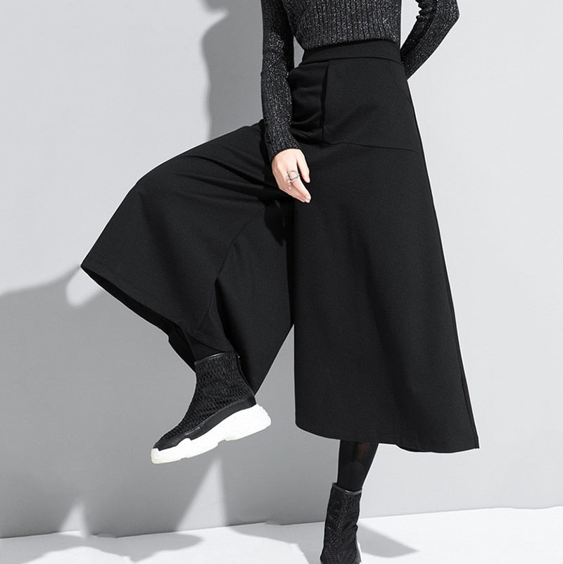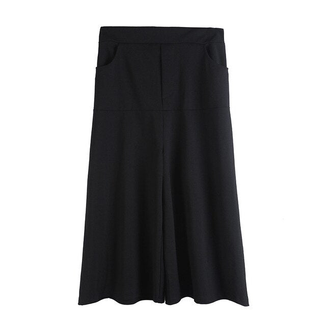 High Elastic Waist Black Brief Long Wide Leg Trousers