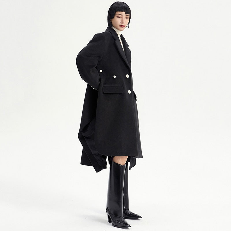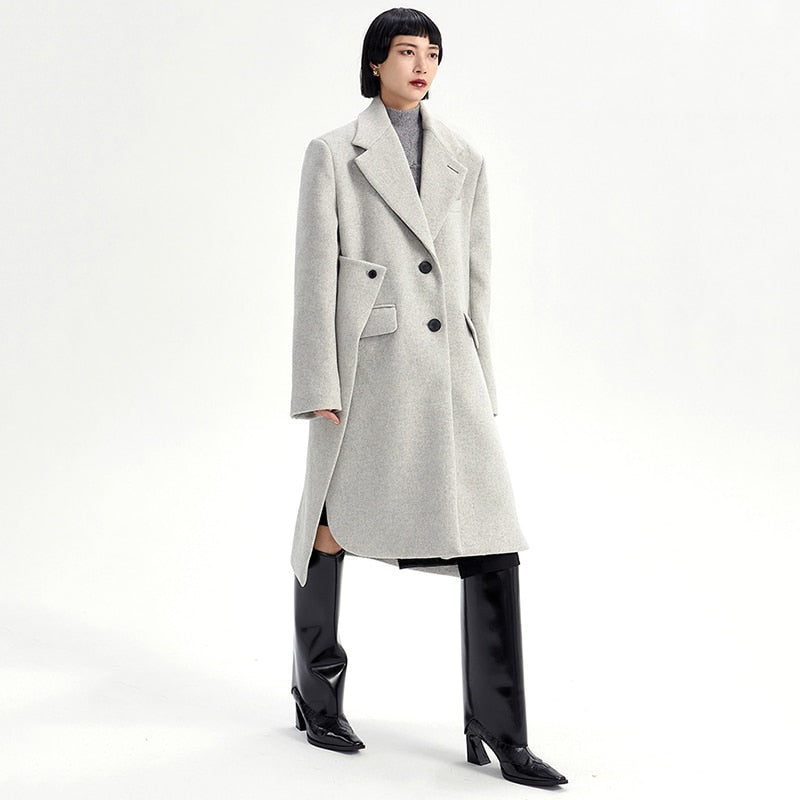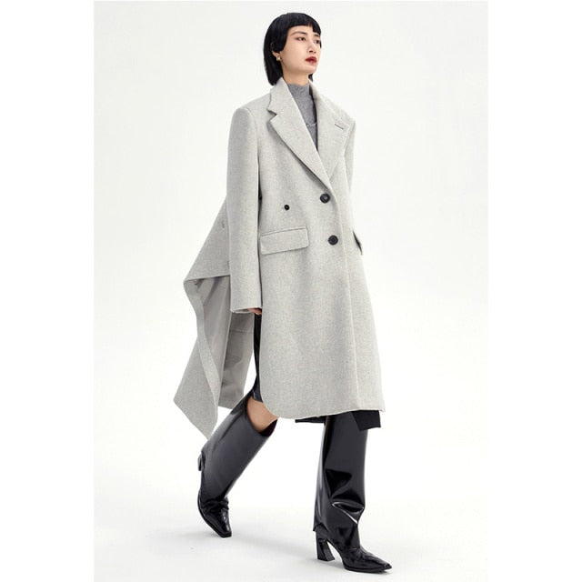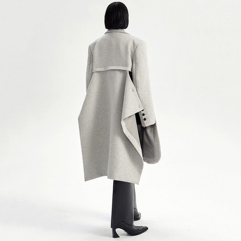 Loose Fit Gray Irregular Big Size Shaped Woolen Coat