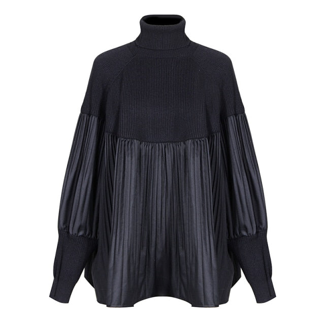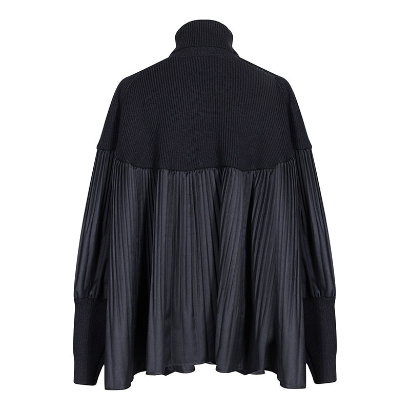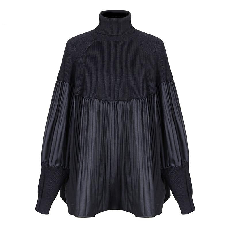 Pelated Split Big Size Knitting Sweater Loose Fit Turtleneck