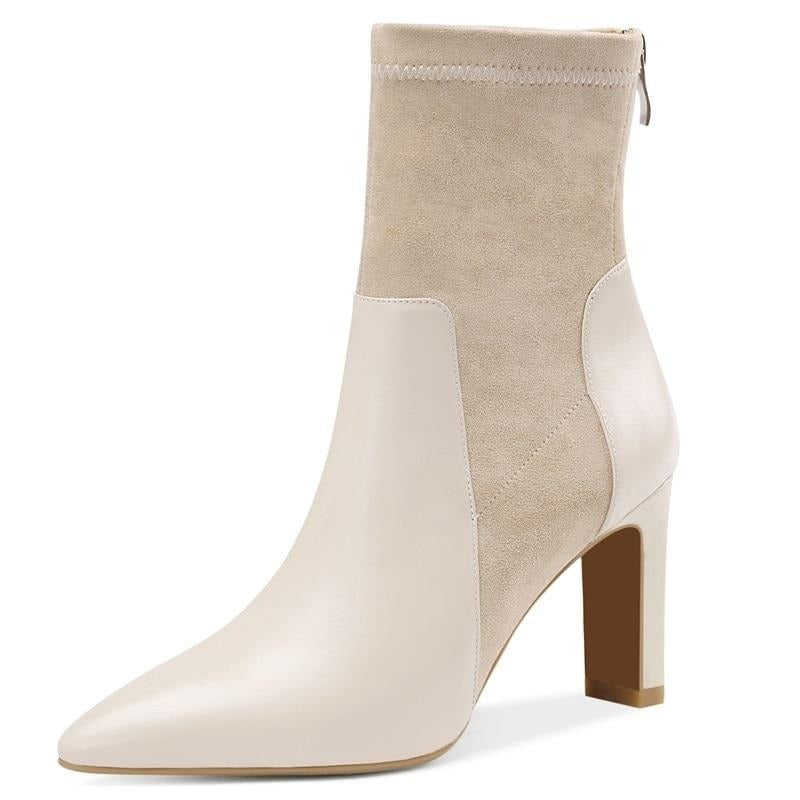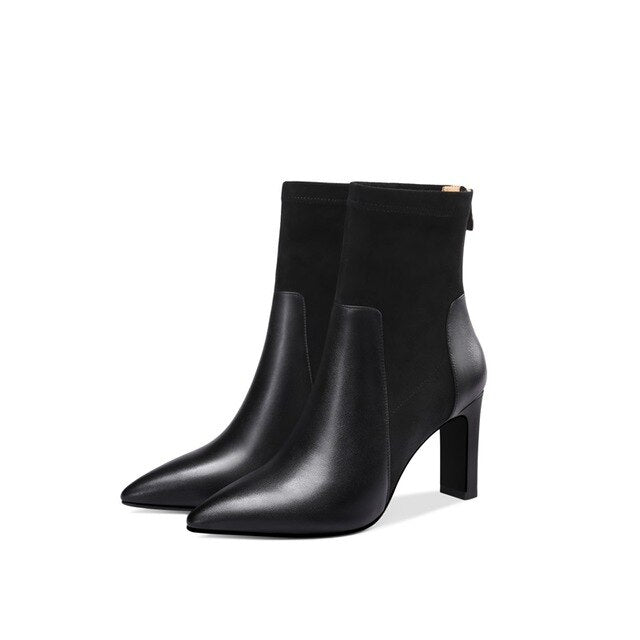 Elegant sexy Flock Cow leather woman Chelsea Booties autumn Winter plush super High heels beige large size women shoes