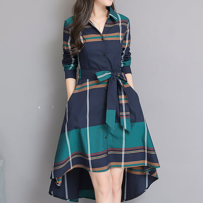 Elegant Asymmetrical Hem Dress Long Sleeve