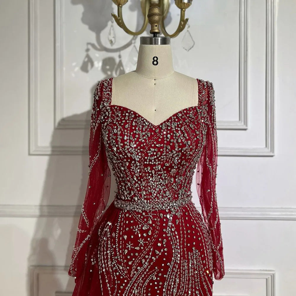 Elegant Beaded Mermaid Evening Dress with Court Train and Square Neckline in Floor-Length Tulle