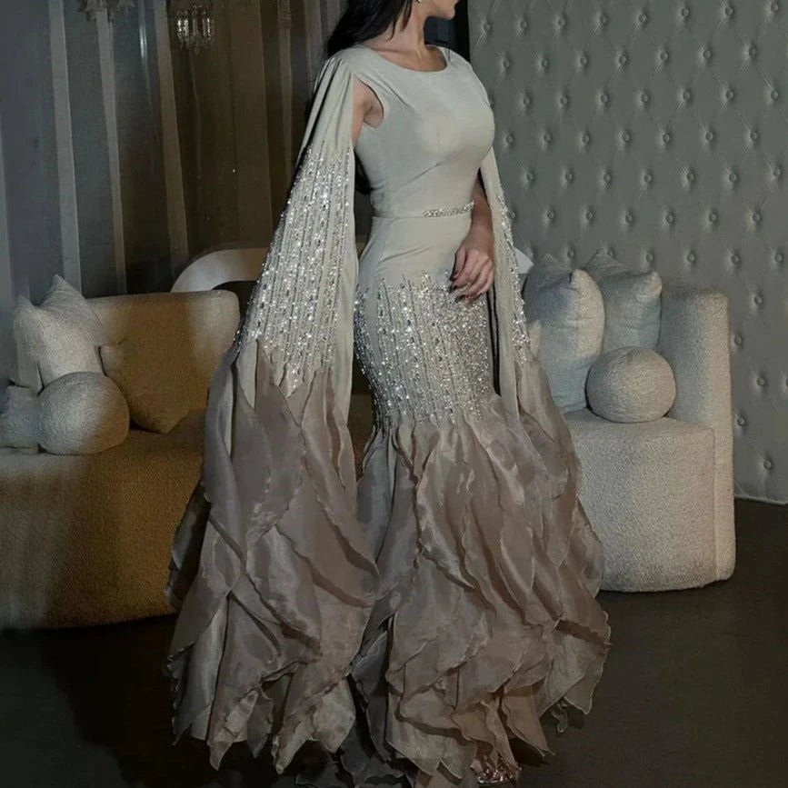 Elegant Cape Sleeves with Beaded Satin for Luxury Evening Events