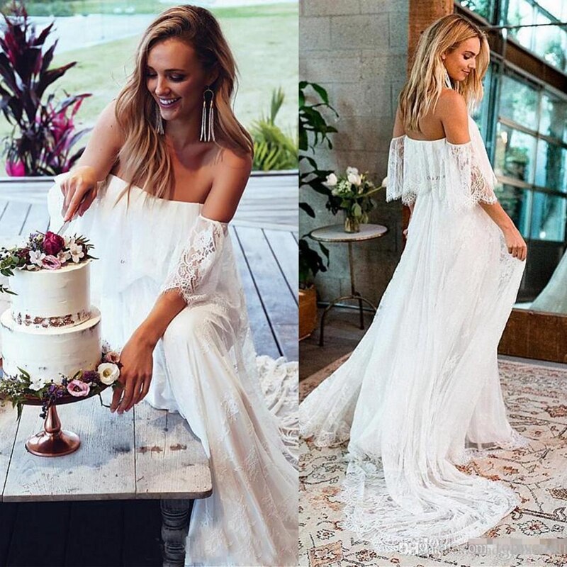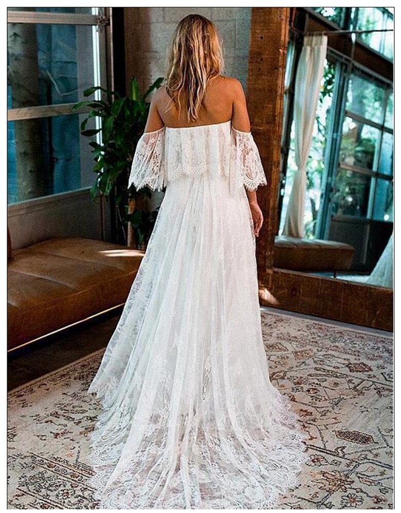 Elegant Long Off Shoulder Mermaid Lace Wedding Dresses Custom Ivory White Floor Length Zipper Back Bridal Gowns for Women