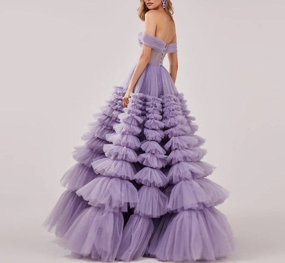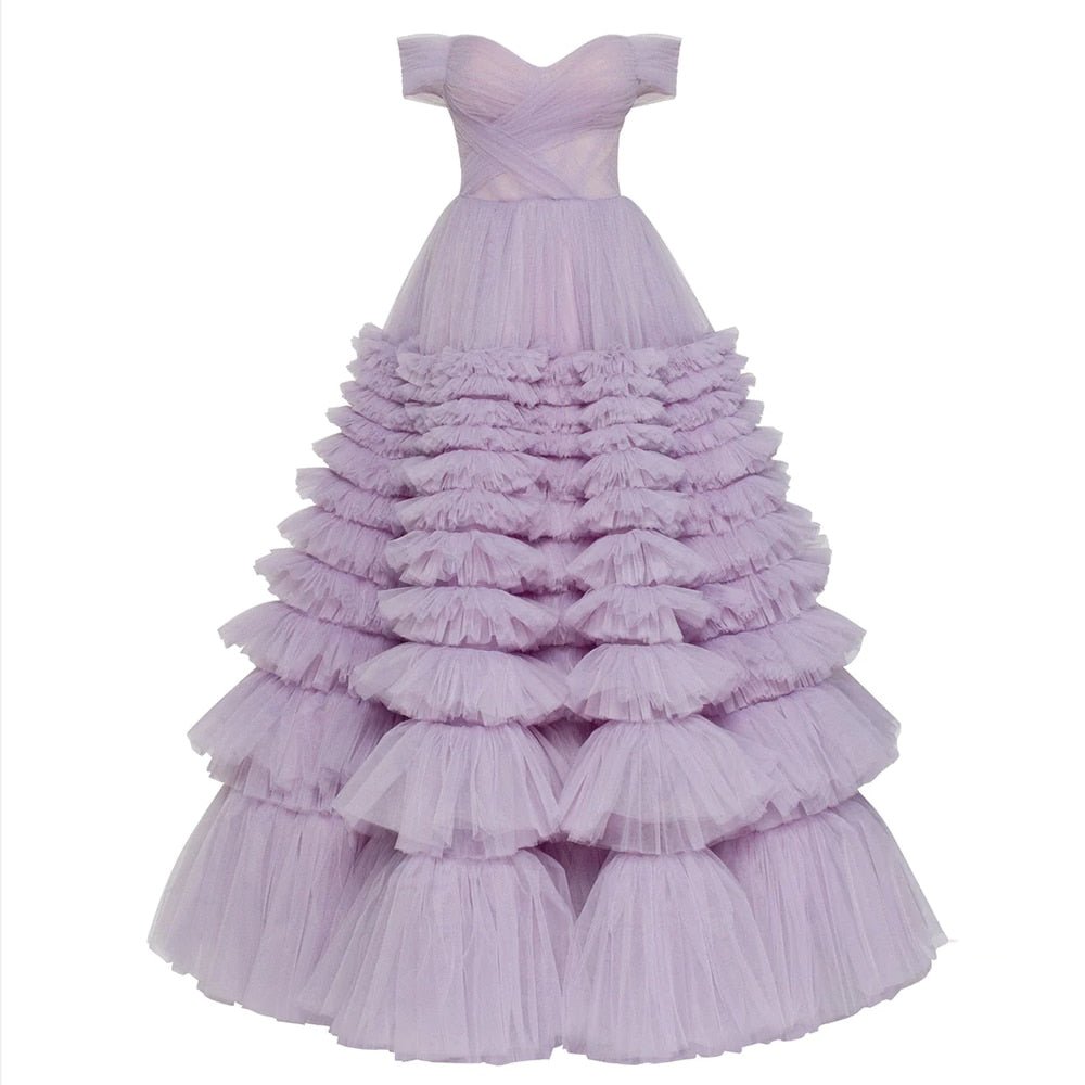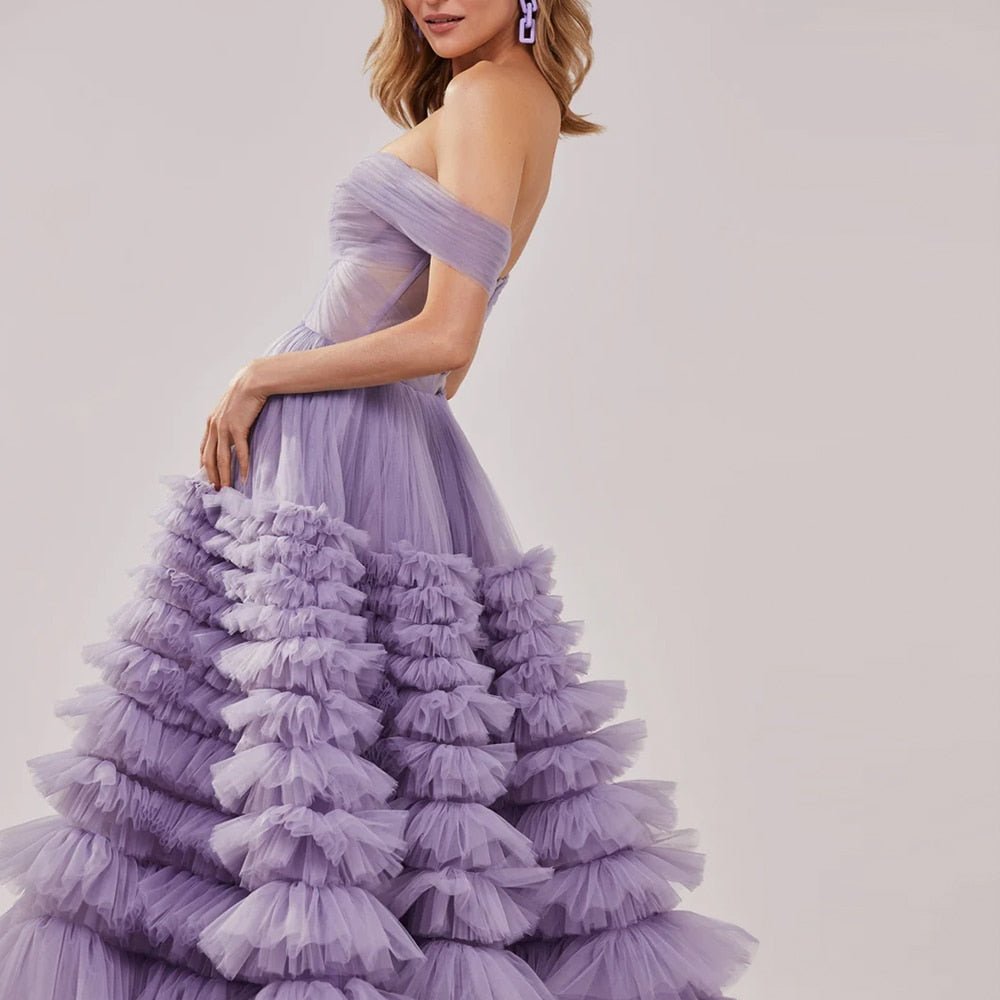 Elegant Off Shoulder Ball Gown Lilac Evening Dresses